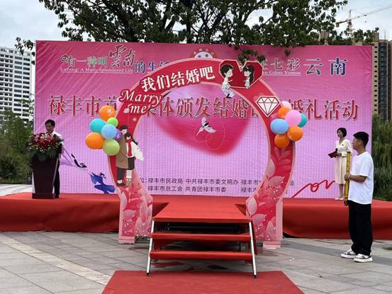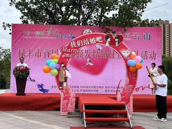 “人间七夕是佳期,喜见鸳鸯结连理”,8月10日是中国的传统节日“七夕节”,禄丰市在这里举行首届“有一种叫云南的生活,爱在七彩云南”为主题的婚姻登记户外集体颁证仪式,见证“新人”们的美好幸福时刻。市人大常委会副主任、市总工会主席李碧明作贺词、市民政局党组书记、局长杨学彬作证婚词,并庄严宣布活动开始。市妇联关主席、市文化旅游局等相关领导参加了活动。
