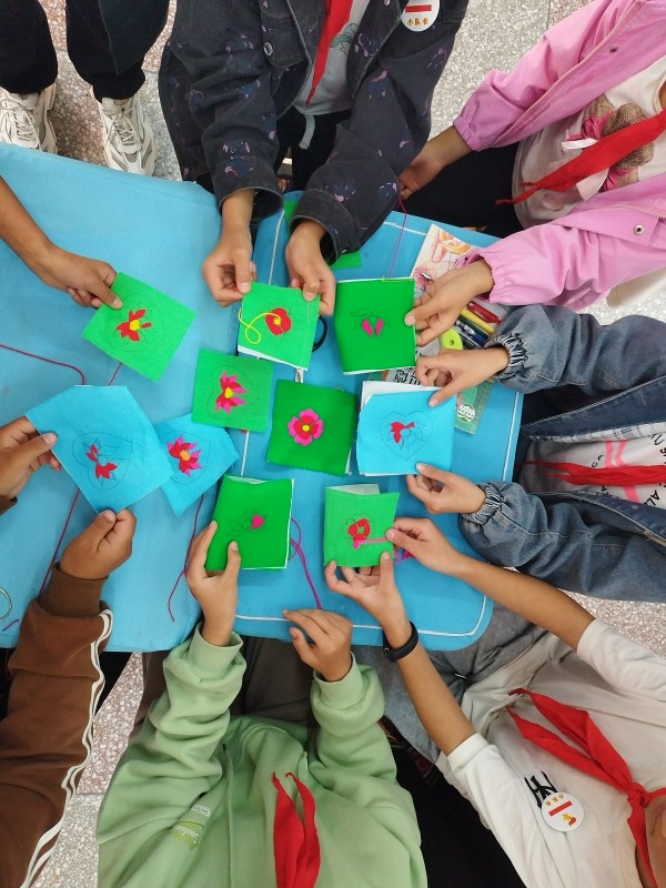 “教孩子要有耐心,她们学得很认真的……”赵美秀对进入课堂的每个孩子都十分用心,手把手传授彝族刺绣技艺,孩子们兴致勃勃,专心致志地听老师讲解。只见赵老师从穿针引线开始,从最基本的针法进行示范,孩子们在老师的鼓励下一针一线尝试,红的绿的、长的短的,稚嫩的小手绣出校园里的别样风景。