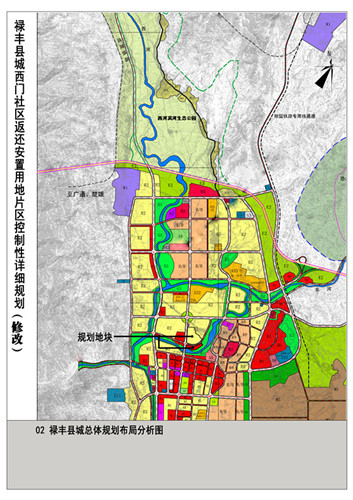 附图:禄丰县总体规划布局分析图、综合现状图、用地规划图、图则01地块、图则02地块。