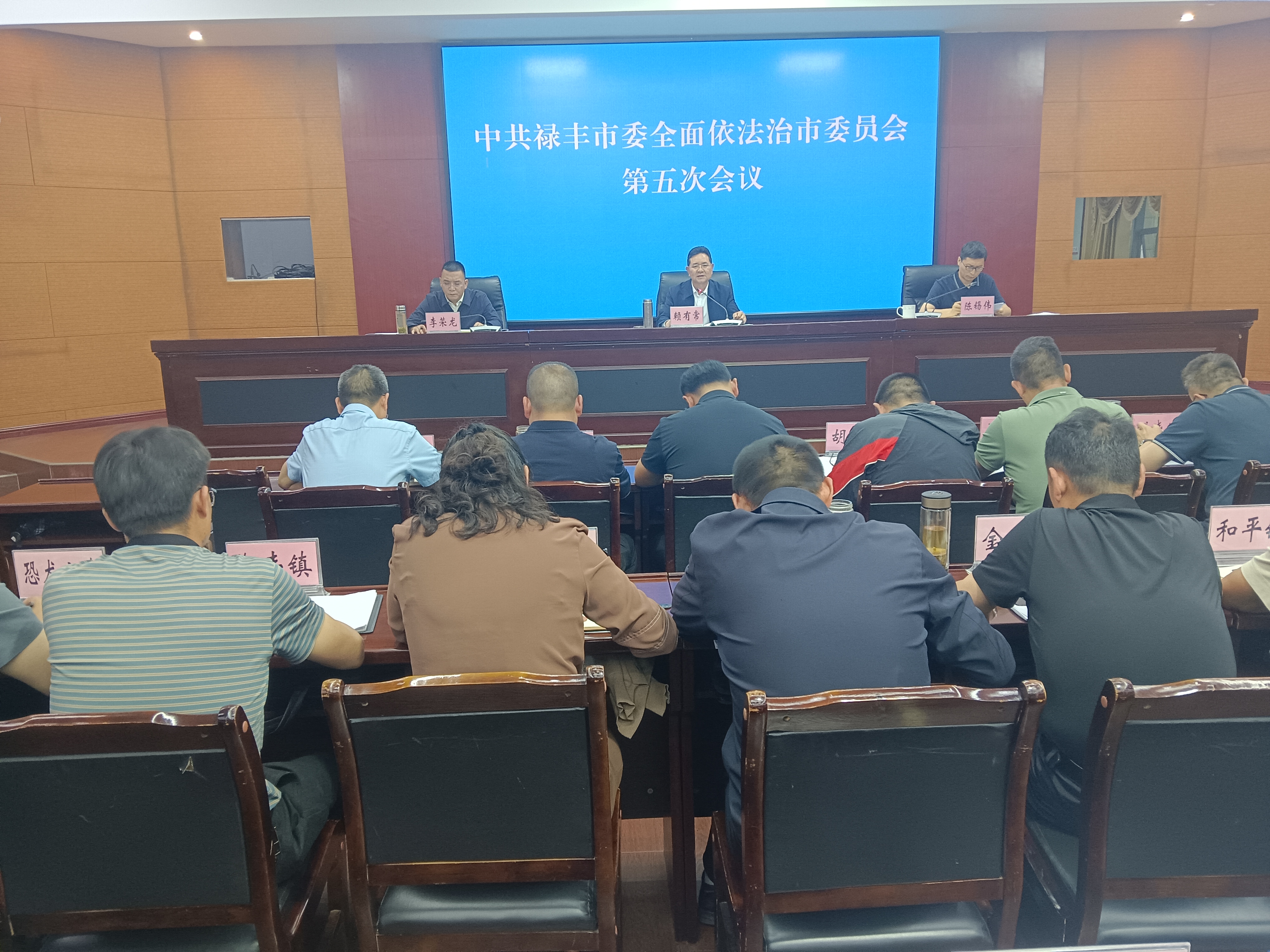 会议要求,推进法治禄丰建设是涉及多领域、各方面的系统工程,也是管根本、管长远的重大任务,全市上下要按照中央和省委、州委部署要求,在思想认识上再提高、工作方式上再创新、责任落实上再加压,在“拧紧责任链条、建强法治队伍、强化督查考核”方面再下功夫,确保全面依法治市各项任务落到实处、见到实效。要坚持党的领导,健全组织保障体系,建好法治队伍,坚持规划先行,为禄丰高质量发展提供坚强法治保障。