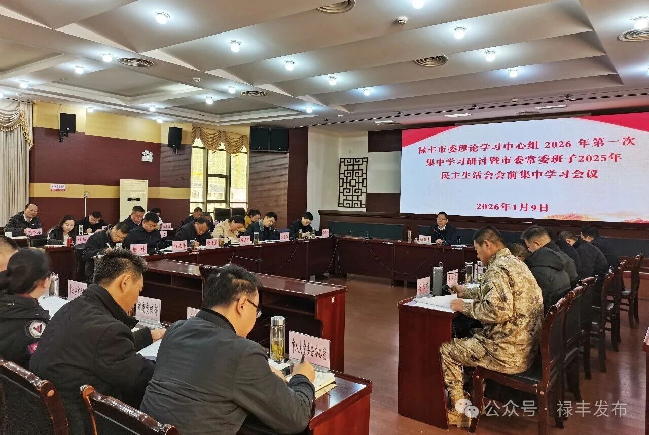 1月9日,中共禄丰市委理论学习中心组举行2026年第一次集中学习研讨暨市委常委班子2025年民主生活会会前集中学习。