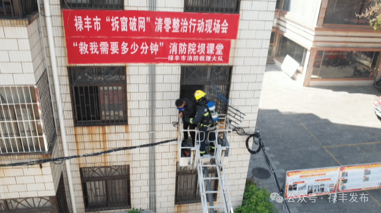 现场推进会现场,参会人员实地查看了整治行动成果展示专区,全面回顾了近两年来禄丰市“拆窗破网”清零整治工作的推进历程、整改数据、群众受益及社会反响情况。在现场实战救援演示环节中,消防员分别对开设逃生窗口的防盗窗、未开设逃生窗口的封闭防盗窗开展模拟救援测试,通过实打实的操作对比,直观展示了两种情况下救援效率的巨大差异。