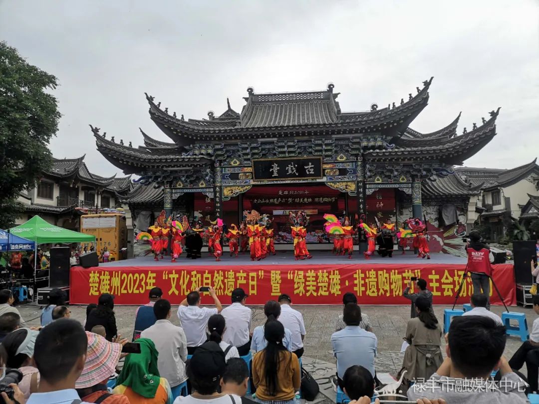 楚雄州2023年“文化和自然遗产日”宣传展示暨“绿美楚雄·非遗购物节”系列活动启动仪式在禄丰市金山古镇举行,随后举办了楚雄州非物质文化遗产项目展演展示活动,来自全州10县(市)最具代表性和影响力的14个非遗展演节目依次登台展演,梅葛演唱《过山调》、彝族左脚调演唱等非遗项目精彩纷呈,其中,禄丰市的《龙腾狮跃》《牛灯舞》《芦笙滚锅舞》3个非遗节目也参加了此次展演,演员们收获颇丰。