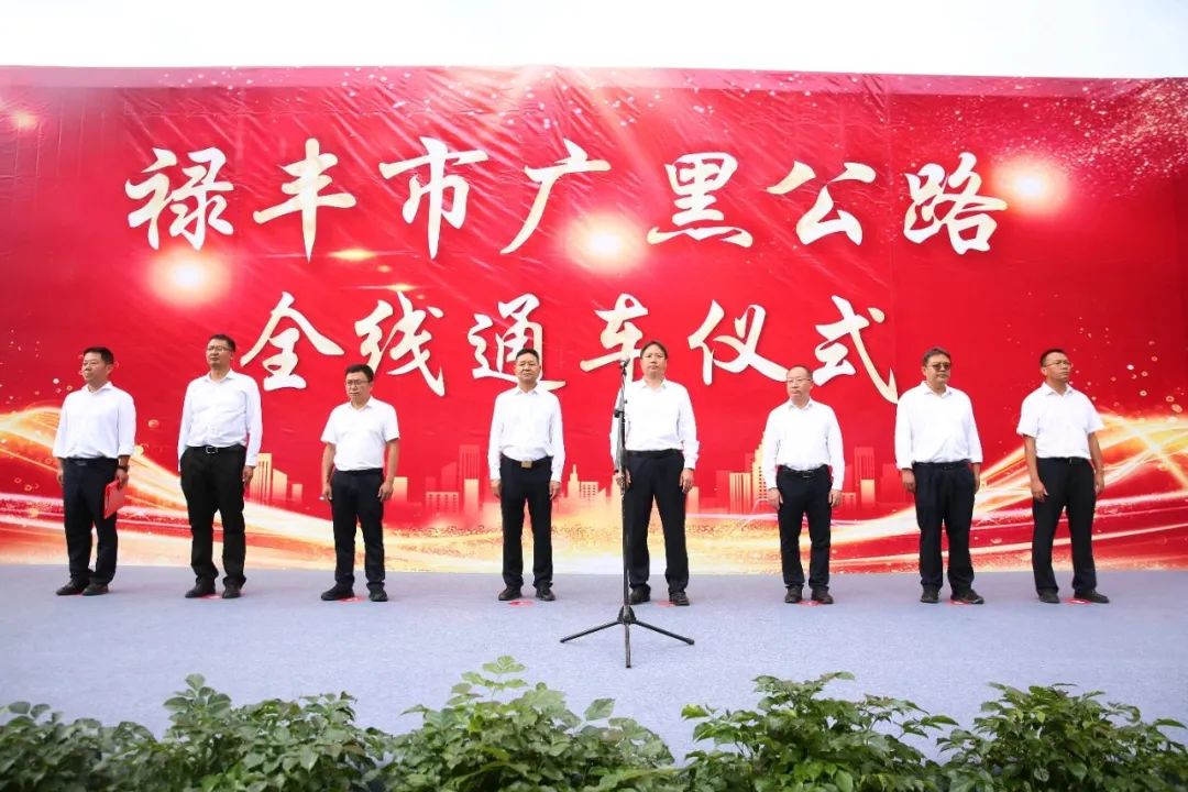 通车仪式上,中共禄丰市委书记赖有常宣布广黑公路正式通车。市委副书记、市人民政府市长窦小军、楚雄州国有资本投资集团有限公司党委书记、董事长郭家权分别致辞。广黑公路起于禄丰市广通镇,穿妥安乡,止于黑井镇。全长20.69公里,按三级公路标准建设,设计速度40公里/小时。全线建设桥梁11座,隧道2座。广黑公路是连接禄丰西北部三个乡镇(广通镇、妥安乡、黑井镇)的一条扶贫公路,此公路于1992年在原修建成昆铁路遗留便道上改建成四级公路,1997年、2001年先后铺筑了广通-妥安、妥安-黑井的弹石路面,2005年改建成沥青路面。多年来,随着黑井古镇旅游业的日益发展,交通通行量持续增长,加上地质灾害时有发生、安全隐患较大,给当地群众日常出行带来极大不便,严重制约了该区域经济社会发展。针对这一困扰地区经济社会发展的“卡脖子”问题,历届市委、市人民政府将广黑公路改扩建工作立上议事日程,多次以专题会议、现场调研、实地踏勘的方式紧盯项目各个环节,于2016年启动了广黑公路改扩建工作,2018年3月26日正式开工建设,其间克服了疫情影响、原材料涨价、建设资金不到位等一系列困难和问题,于2023年9月28日全线建成通车。广黑公路改扩建工程是全市农村公路建设史上投资规模最大、建设标准最高的一条三级公路。禄丰市交通运输局局长张星明介绍道:“道路建成以后是20公里,比原来缩短了6公里里程,这条道路的建成对改善禄丰西部广通、妥安、黑井群众的出行,还有助推脱贫攻坚、乡村振兴,以及推动黑井特色旅游小镇的发展意义非常重大,是一条实实在在的民心路、一项实实在在的惠民工程。”