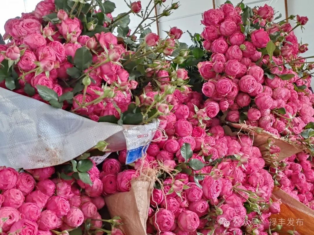 在勤丰镇方德波尔格花卉基地,鲜花品种四季变换,玫瑰、非洲菊竞相开放,工人们正在忙着采摘、包装鲜花。“这边是我们的玫瑰大棚,前面是郁金香大棚,后面是非洲菊大棚,大家充满了干劲。”鲜花采摘下来15分钟内,就进入第一道冷库中醒花,工作人员依次按照鲜花品质打包、装箱,贴上二维码进入冷库。花卉基地工作人员介绍,大棚内使用自动化、智能化的浇水施肥和自动控温系统,既提高了生产效率,又让鲜切花实现了高产出,每天有近20万枝的鲜切花从这里运往全国各地。