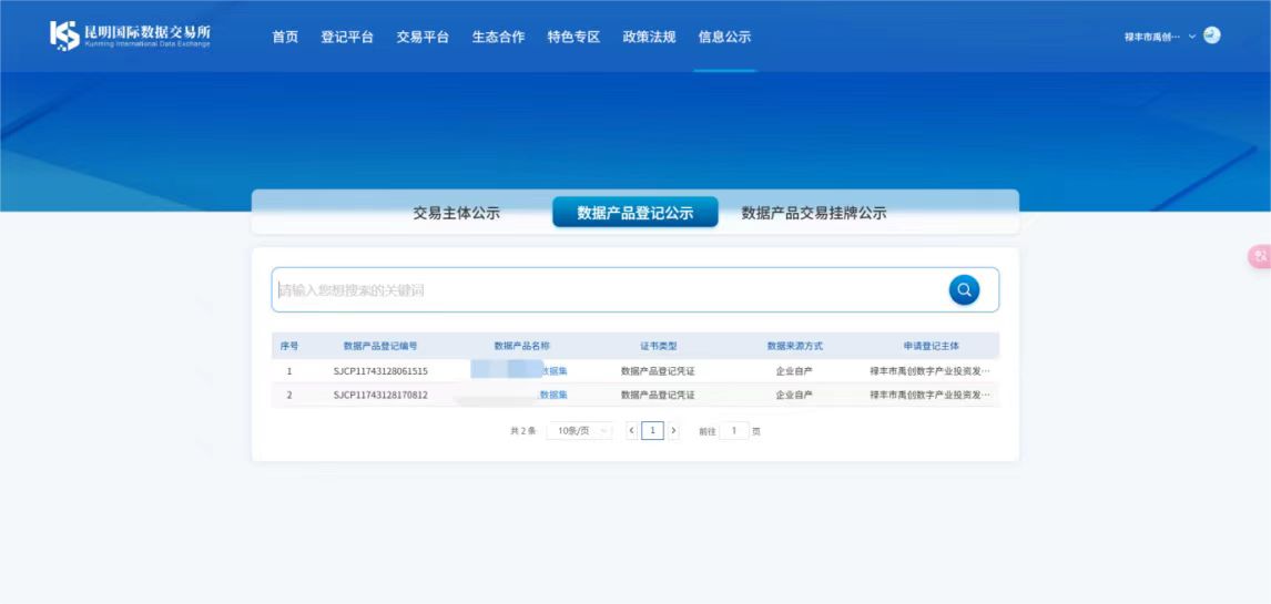 3月31日,昆明国际数据交易所数据要素流通服务平台全球上线。在禄丰市发展和改革局(禄丰市数据局)的指导下,禄丰市禹创数字产业投资发展有限公司作为云南省首批县域数据资产确权登记企业,携核心数据产品成功完成登记,并实现北京、昆明双交易所双向互认互通。标志着禄丰市正式踏入数据要素市场,为禄丰市数字经济发展提供新样板。