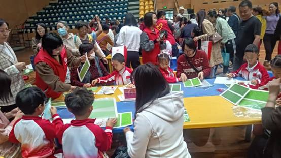 活动现场,楚雄州民政局、禄丰市民政局向前来参加活动的老人和孩子送去暖心礼包,祝愿“一老一小”端午节安康,节日快乐。市公安局开展交通安全宣传、市卫健局开展八段锦现场演示、市妇幼保健院对老年人开展健康检查、禄丰市红十字会暖雪爱心志愿者服务队为老人理发,团市委联系爱心企业南韶直通眼镜(明度眼科)为参加活动的老年人及青少年检验视力,开展爱眼护眼知识宣讲,根据每位参加活动人员的视力情况提出针对性爱眼护眼意见。并为每一位到场的55岁及以上深受视力困扰的老年人配赠老花镜,为在校学生提供优惠配镜服务。同时开展老人和孩子制作香囊、包粽子、运气球等游戏,让他们享受了一把儿孙绕膝、其乐融融的节日氛围。