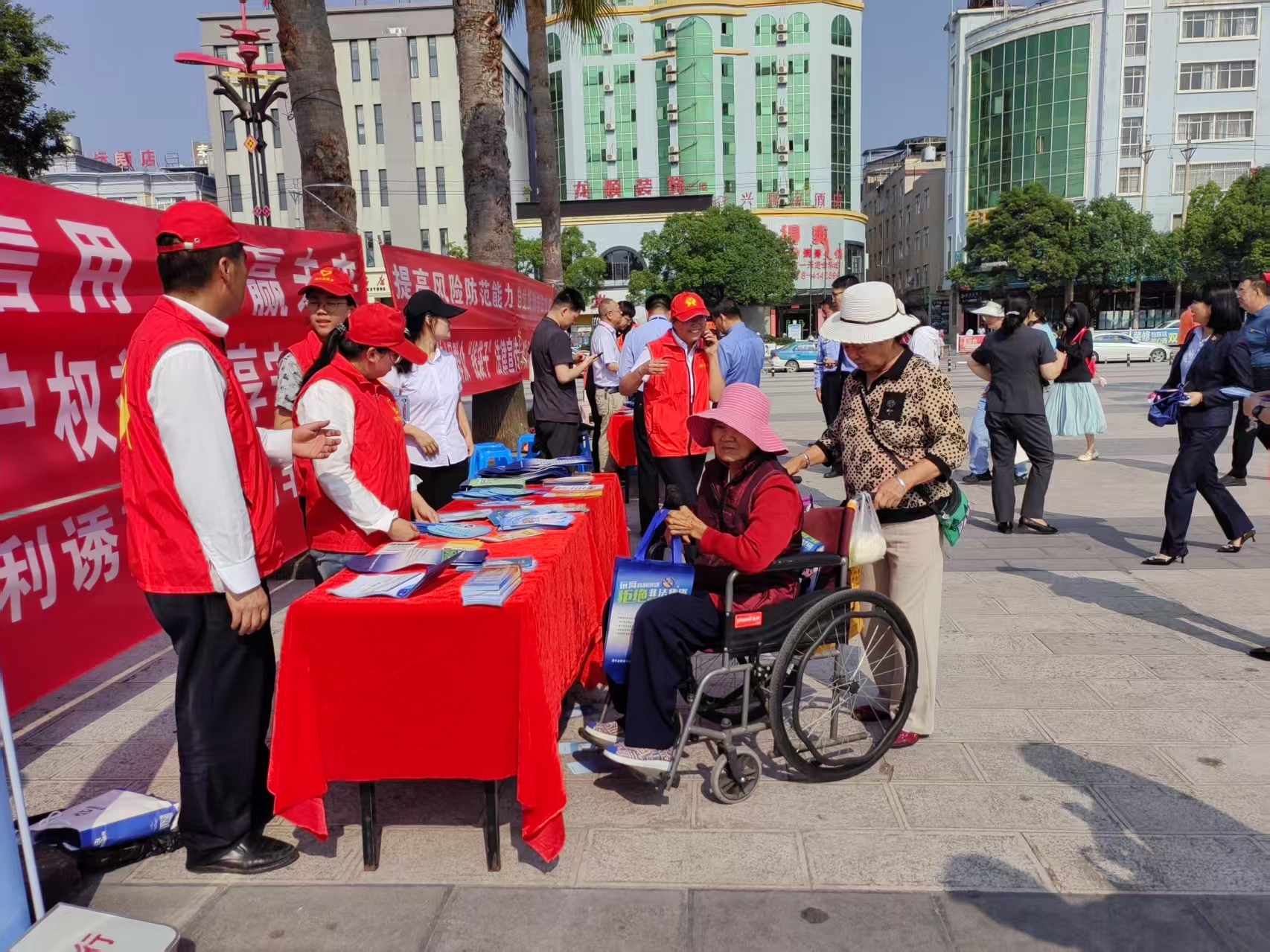 活动现场,工作人员通过设置咨询台、悬挂宣传横幅、发放宣传材料、讲解政策知识、分享诚信案例等方式,着重普及信用知识,引导群众根植“守信光荣、失信可耻”的诚信理念。本次活动共向过往群众发放宣传单200余份,印制有“关爱信用记录,争做诚信达人”折扇300余份,各种预防金融诈骗及相关法律法规宣传册200余份。