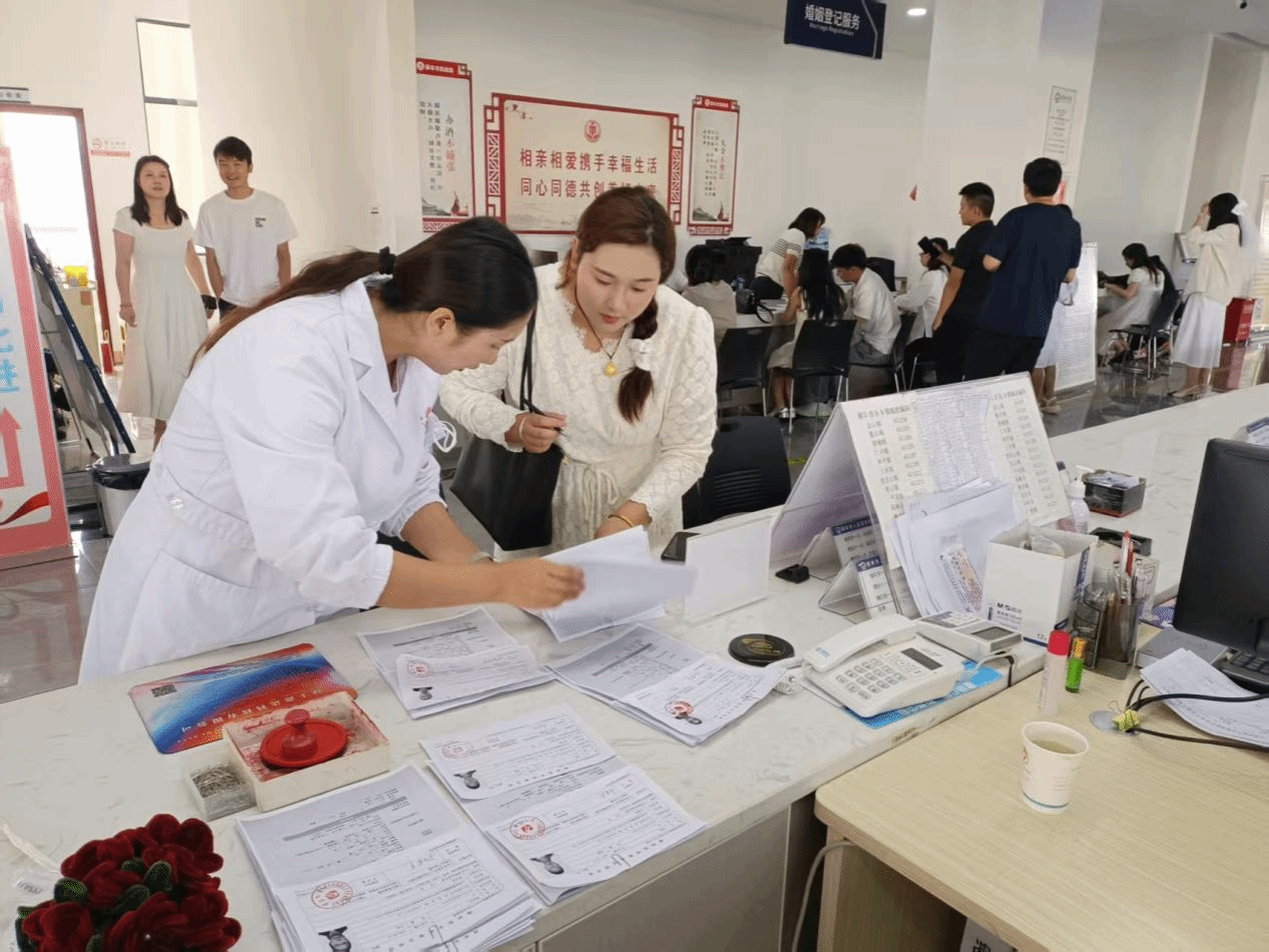 当浪漫的 “520” 遇上周末,婚姻登记窗口的灯光依然明亮。为圆新人 “特殊日子领证” 的心愿,政务服务中心专门开通 “无障碍领证” 绿色通道,工作人员放弃休息,全天候提供登记服务。从资料审核到证件打印,每一个环节都细致周到,让 “520 特快专列” 载着新人的幸福启航。