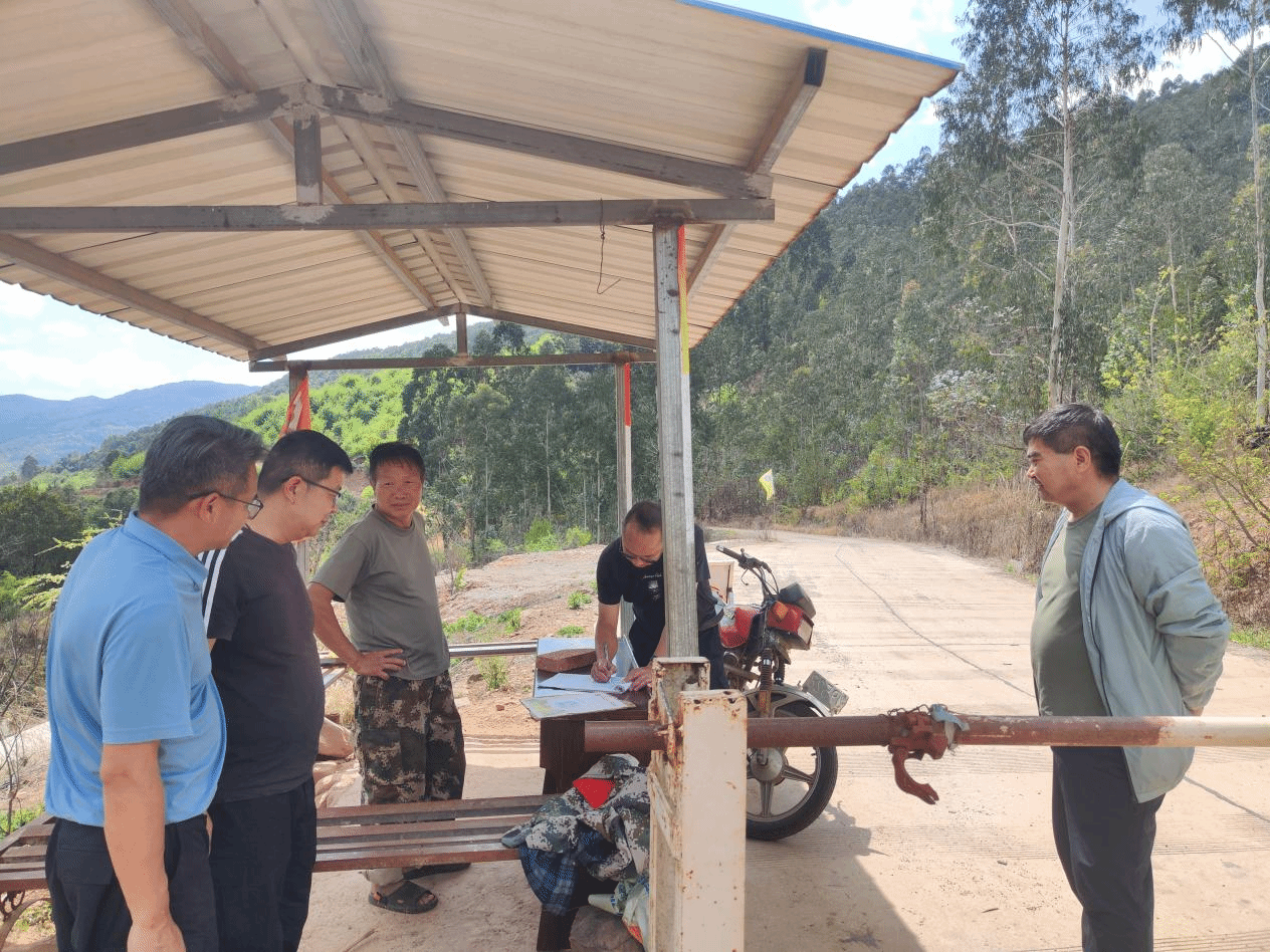 工作组一行首先来到阿勒村委会重点林区防火检查卡点,实地察看党员责任区、党员先锋岗设置情况,详细了解卡点值守、入山登记、火源管控等措施落实细节。随后,工作组与村“两委”干部、驻村工作队员及部分党员代表进行座谈,认真听取近期森林防火工作部署、宣传教育、应急准备及值班巡查等情况汇报,并就党建引领防火工作进行深入交流。