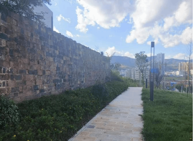 (三)遗址保护,让明清城墙“活”在公园中。公园场地内保存有禄丰明清城墙残段,是城市历史的重要见证。项目坚持“保护为主、合理利用”原则,将古遗址保护与公园建设有机融合。一方面,对城墙残段进行本体加固和标识展示,设置保护隔离带;另一方面,以遗址为核心打造文化节点,通过小品置石、解说标识等手法,讲述禄丰古城变迁故事。这种“公园+遗址”的模式,让历史记忆融入日常生活,实现了生态价值与文化价值的双重提升。