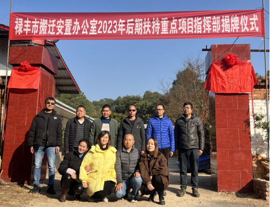 上午10时,在喜庆热烈的鞭炮声中,市搬迁安置办公室党组书记、主任吉正祥,党组成员、副主任王荣刚揭开了禄丰市搬迁安置办公室2023年后期扶持重点项目指挥部牌匾的红彩头,市搬迁安置办全体干部职工、和平镇等相关人员参加了重点项目指挥部揭牌仪式,标志着2023年移民后期扶持项目启动正式拉开帷幕。