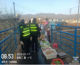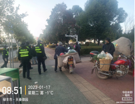 2023年1月17日上午9时许,禄丰市城管局执法队员巡逻至侏罗纪大街中段天泰御园对面小铁桥时,发现大量摊贩在此卖菜,因气温低桥面结冰,路面较湿滑,菜贩聚集在此摆摊卖菜,存在较大安全隐患。见此,执法人员开始劝告摊贩到安全区域或进入市场规范经营,并告知群众进市场购买。