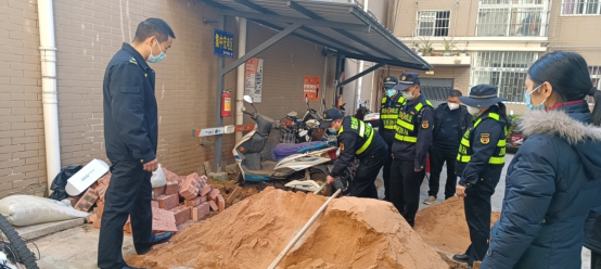 2023年1月13日上午,禄丰市城市管理综合行政执法局值班室一阵电话铃声,“喂,你好!是城管局吗?我们小区有人正在公共绿化带里建房子,请你们来管一下”。值班人员接到小区内业主反映,正直周末,立即向正在加班的局长刘生寿报告,十分钟后,局长就召集了市城市管理综合行政执法局、市住房城乡建设局、市自然资源局、金山镇人民政府、金山物业公司等相关人员前往案发地点,对正在违建的住户进行叫停、调查。经过多家单位现场勘查、认定,当事人利用小区自家门前的绿化带进行构筑物搭建属于违法行为,随即对违规私搭乱建的建构筑物进行依法拆除。