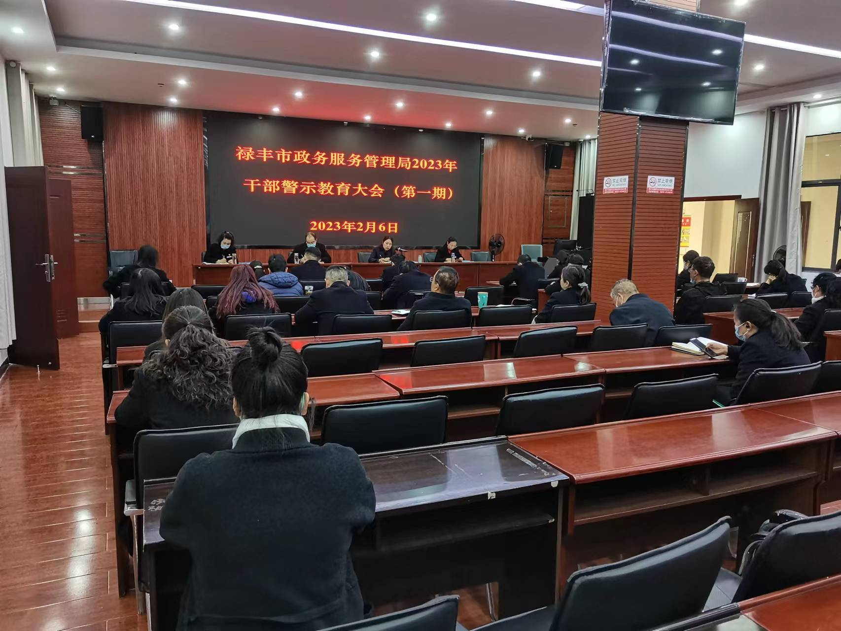 2023年2月6日,禄丰市政务服务管理局召开2023年第一期警示教育大会,念紧“廉”字经,重塑工作“纪律墙”,打出重点“工作牌”,确保新年工作“开门红”。会议由局党组书记、局长李朝鸿同志主持,全局干部职工46余人参会。会上,派驻市政府办纪检监察组王斌同志通报了大姚县和武定县有关案件情况,组织观看了警示教育片《你是谁的人》,局党组书记、局长对全局干部职工进行了集体廉政提醒谈话,要求全局干部职工“收假”之后及时“收身”“收心”,迅速从“过年模式”转换到“工作模式”,并全身心投入工作状态,努力开启新征程,尽职尽责创造新业绩。