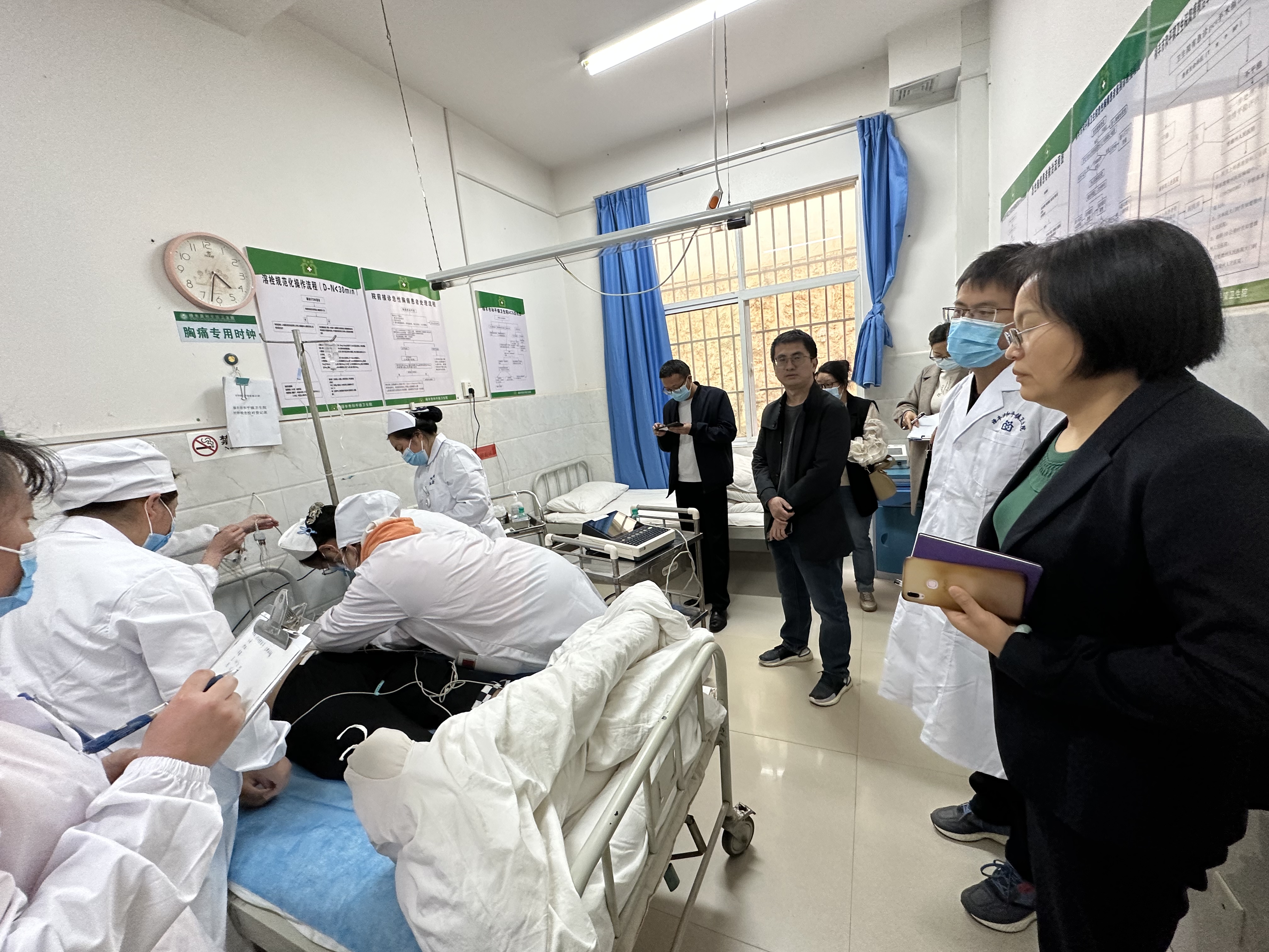 随后,三位专家对市医院胸痛中心的病历关键时间节点的溯源、相关文书规范性、三会记录、院内及大众培训等方面进行了检查,还深入到心内科、急诊医学科等进行实地查看,对胸痛中心建设基本条件、组织管理、标识标牌、救治流程、设备及检查配置、诊疗技术要求、质量评价与持续改进流程等进行了全面细致的考核评估。专家组在检查过程中对禄丰市胸痛中心质控取得的成绩给予了高度肯定,同时也对存在的问题提出了整改意见。