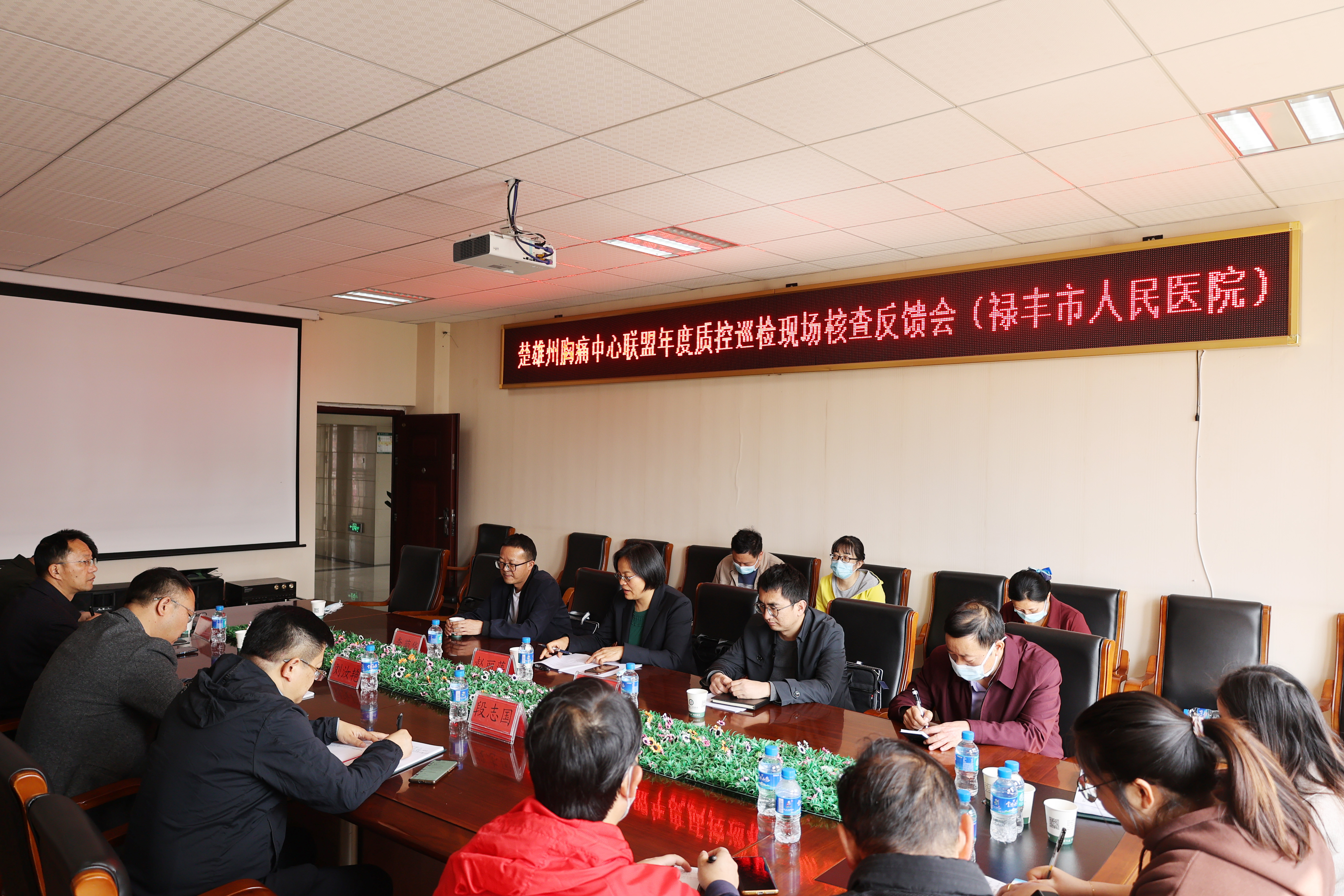 汇报会在禄丰市人民医院医技楼五楼会议室举行,市卫健局副局长徐永等领导出席会议,医院院长刘汝艳、党总支书记段志国等院领导及胸痛中心核心科室业务骨干参加会议,会议由医院副院长胡从恒主持。
