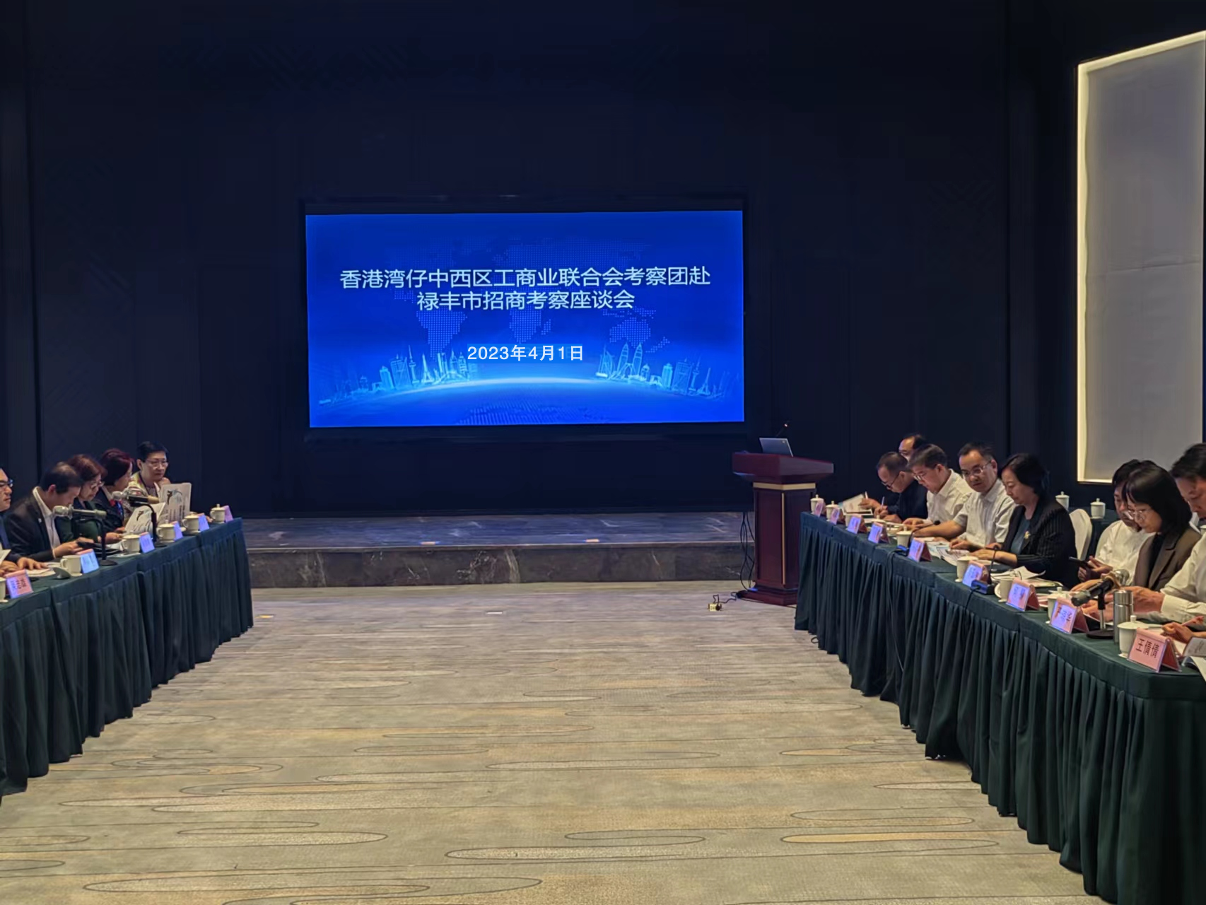 2023年4月1日,香港湾仔中西区工商业联合会考察团一行19人到禄丰市考察。考察团在省政协港澳台侨和外事委员会副主任杨焱平、州政协副主席李玉林等领导的陪同下考察了禄丰世界恐龙谷、金山古镇,并在悦恒大酒店召开招商推介会,推介会由市政协副主席严琼华主持,市委常委、市人民政府副市长何柳致欢迎辞,市人民政府副市长高俊作招商推介,考察团成员与禄丰市参会人员互动交流座谈,双方围绕医养、新能源等产业投资及金融合作方面交换了意见,同时双方也希望以今天为合作共赢的起点,今后进一步加强交流、增进友谊,不断拓展共同发展的平台。省、州、市政协及市投资促进局相关领导参加招商推介座谈。