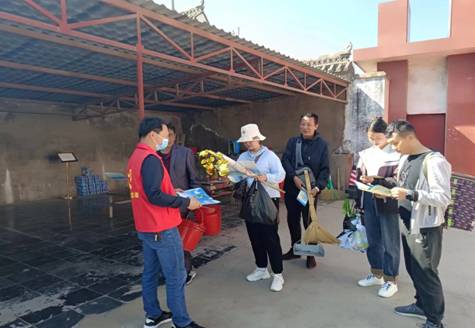 民政志愿者向祭扫人员发放文明祭扫宣传册