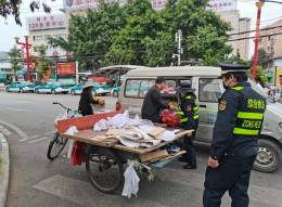 近日,禄丰市城管局执法队员在巡查到金水路与泰安路交叉路口时,发现一辆流动三轮车水果商贩在机动车道上占道经营,严重影响市容并存在交通安全隐患。经执法人员询问,商贩刘女士是一名六十多岁老人,因三轮车坏掉无法驶离便停在了斑马线上,于是通过电话联系其家属,待其家属赶到后一起帮忙把水果搬运到机动车上,并把三轮车移到附近修理店进行维修,路过的市民纷纷称赞。事后刘女士和及其家属向城管执法人员表达了感谢,并承诺以后一定按规定进市场内规范经营。
