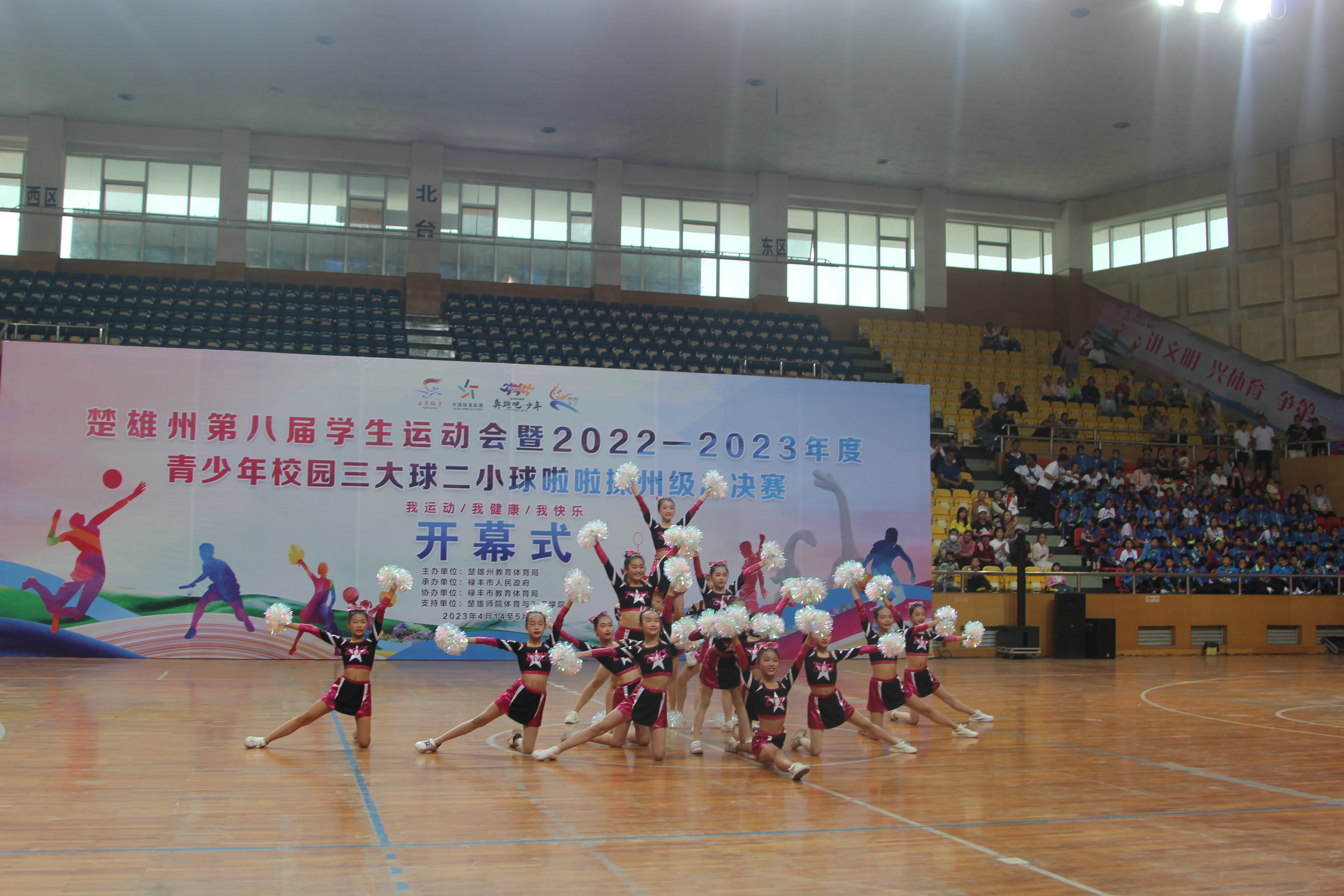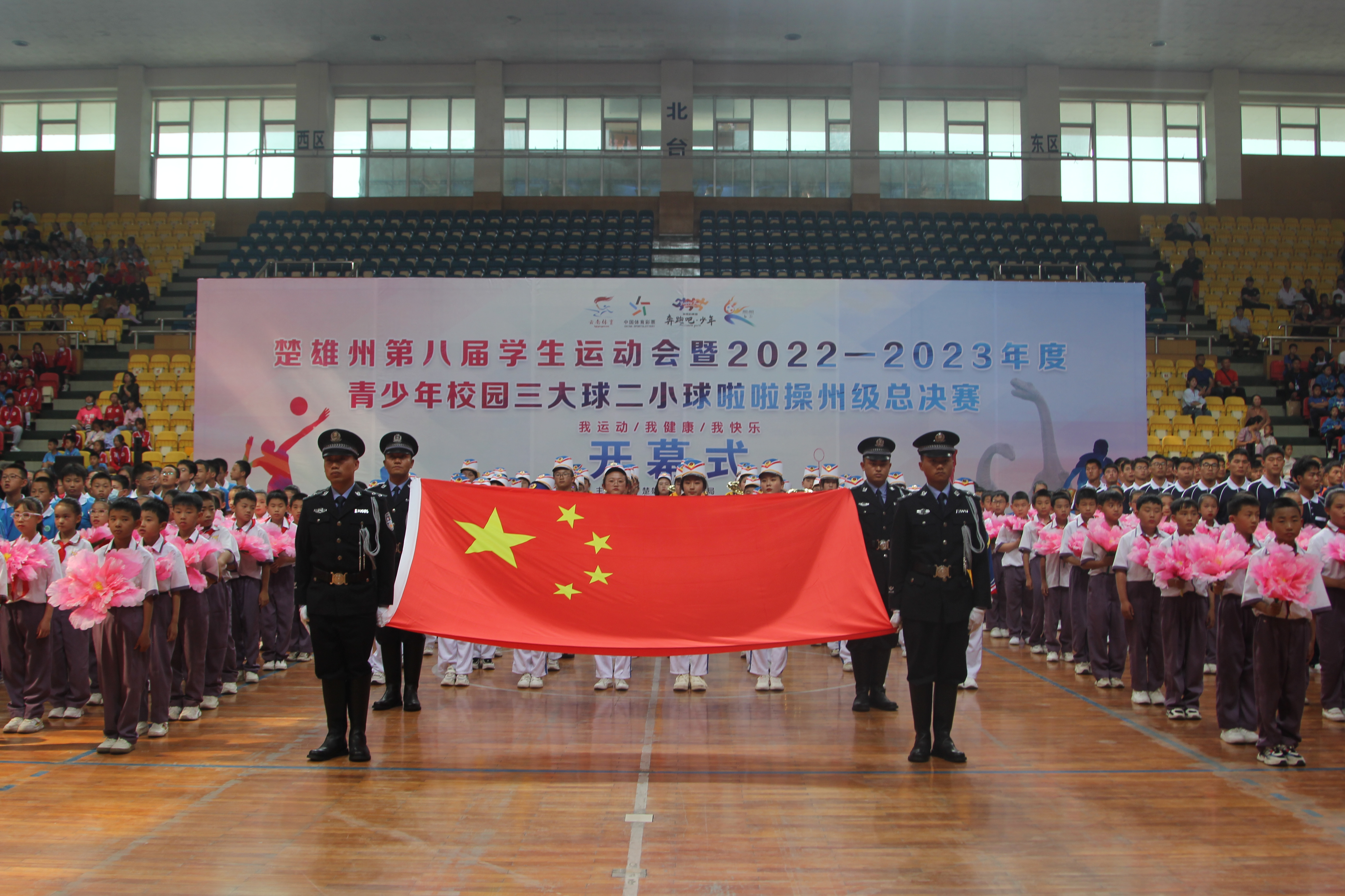 4月15日下午,楚雄州第八届学生运动会暨2022-2023年度青少年校园三大球二小球啦啦操州级总决赛开幕式在禄丰市体育馆举行,来自全州10县市和州属学校的130支代表队的运动员以及教练员、裁判员、领队共1768人参加了开幕式,楚雄州人民政府副州长彭玮出席并宣布开幕。楚雄州教育体育局局长罗向阳致开幕词,中共禄丰市委副书记、市人民政府市长窦小军致欢迎辞。