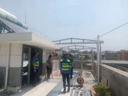 2023年4月20日上午,禄丰市城管局执法大队在日常巡查时,发现位于金山南路南延线一居民正在五楼楼顶违规搭建钢架屋顶,执法人员迅速前往制止,要求立即拆除,并及时报告市违建整治办。经执法人员现场询问,当事人称:“屋顶漏水要搭建彩钢瓦棚以防水”。执法人员严肃、认真、耐心的对户主进行相关法律法规宣传,讲解违规搭建彩钢瓦的危害,劝说居民漏水可以采取防水措施,并动员违建户主立即自行拆除正在搭建的彩钢瓦顶。