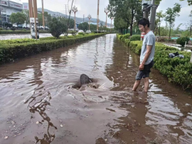 2023年6月8日下午,禄丰市城区突降暴雨,受暴雨影响,城区多处形成大量积水情况,特别是侏罗纪大街海丰车市前、金山南路小花园附近等区域积水较深,给市民出行带来极大安全隐患。