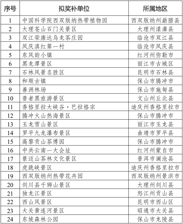 7月26日,云南省文化和旅游厅公示云南省2022年度绿美景区标杆典型拟奖补名单。按照《中共云南省委办公厅云南省人民政府办公厅关于印发〈云南省城乡绿化美化三年行动(2022—2024年)〉的通知》(云办发〔2022〕43号)、《云南省城乡绿化美化工作领导小组办公室关于印发云南省城乡绿化美化标杆典型奖补方案的通知》(云发改城镇〔2023〕648号)要求,云南省文化和旅游厅组织开展了推荐及实地评审工作,形成《云南省2022年度绿美景区标杆典型拟奖补名单》并公示,其中禄丰市金山古镇景区、黑井古镇景区进入云南省2022年度绿美景区标杆典型拟奖补公示名单。