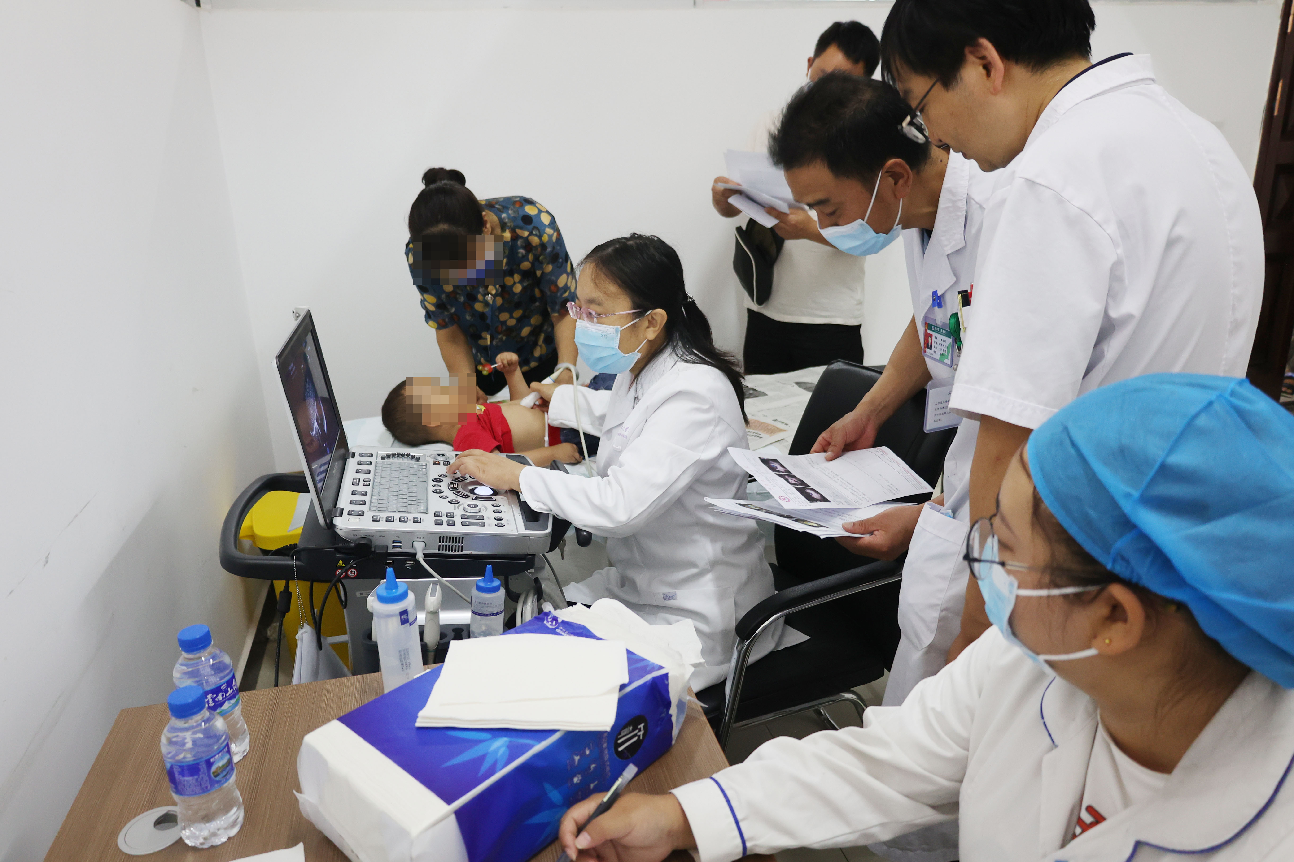 28日上午,专家们在禄丰市人民医院进行先天性心脏病疑似患儿的确诊筛查工作,此次对61名疑似先心病患儿进行初步确诊筛查,其中,有8名孩子需要在下一阶段前往清华大学第一附属医院进行进一步治疗。