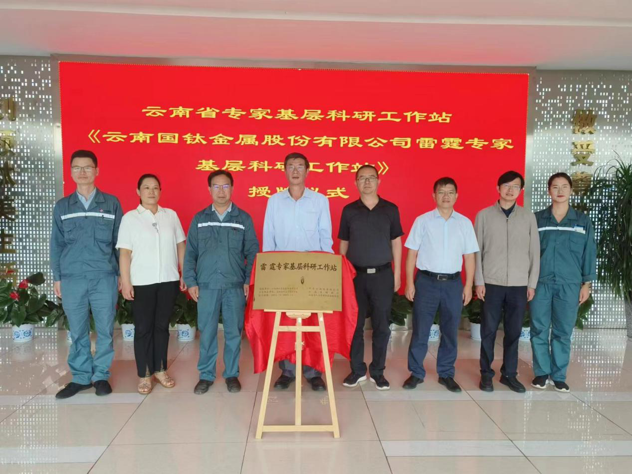8月3日,禄丰市举行“云南国钛金属有限公司雷霆专家基层科研工作站”授牌仪式。禄丰市委组织部副部长、市人力资源和社会保障局党组书记、局长薛家宏同志为云南国钛金属有限公司授牌。