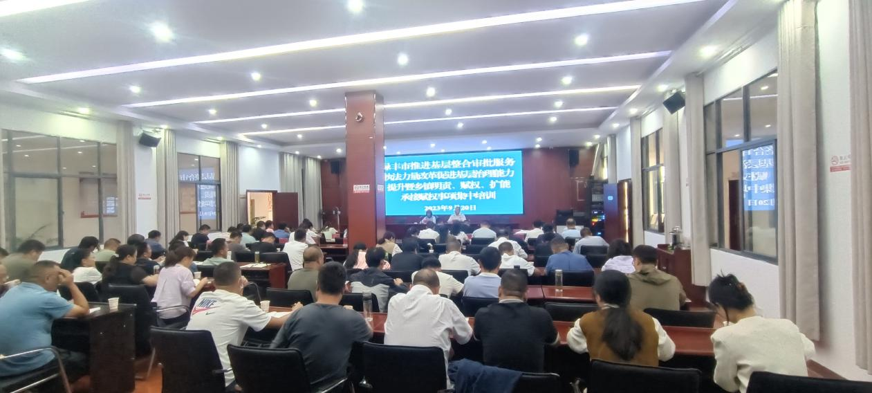 为抓实禄丰市基层整合审批服务执法力量改革促进基层治理能力提升,做好乡镇明责、赋权、扩能承接赋权事项工作,9月20日,禄丰市举办基层整合审批服务执法力量改革促进基层治理能力提升暨乡镇明责、赋权、扩能承接赋权事项业务培训,14个乡镇分管改革工作的领导、政务服务中心、综合行政执法办公室、综合行政执法队负责人及部分业务骨干,13家行业主管部门分管领导、业务人员共80余人参加培训。