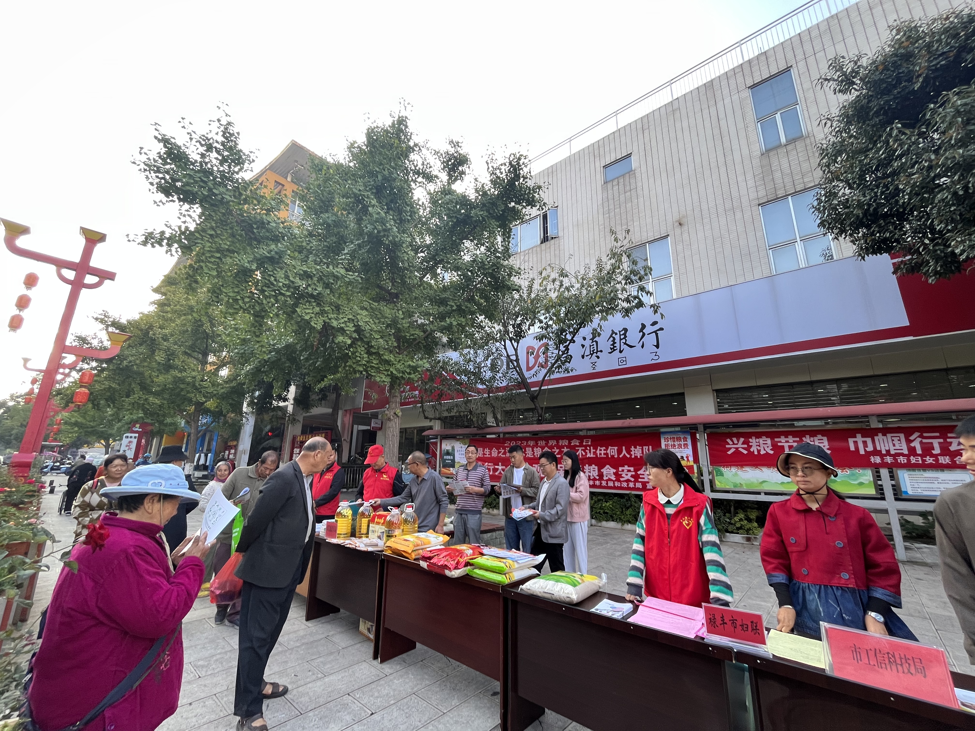 2023年10月16日上午,禄丰市发展和改革局、市教育体育局、市农业农村局、市工业信息化科学技术局、市妇联,市粮食储备有限公司6家单位联合在市体育广场开展以“水是生命之源,水是粮食之本。不让任何人掉队”的世界粮食日主题活动和“践行大食物观 保障粮食安全”为主题的粮食安全宣传周主题活动。