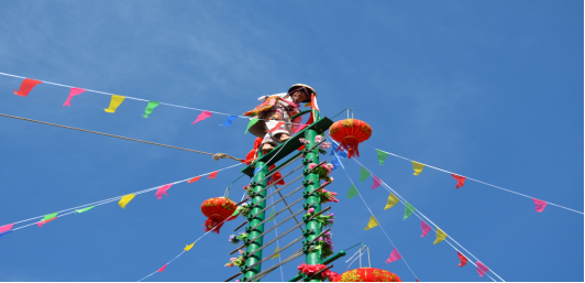 “上刀山,下火海”是傈僳族人的传统表演绝技,已有上百年的历史,成为了傈僳族人民的传统节日。在下午“上刀山”表演中,表演者赤足逐级爬上由36把锋利钢刀捆扎的12.8米多高的刀杆顶端,锋利的刀刃全部向上,每把刀相距尺许。爬上顶端后依次进行开天门、挂红、向观众抛撒糖果,以祈求来年风调雨顺、五谷丰登、四季平安。夜幕降临后,熊熊的火堆燃起来了,四周围满了观众。在鼓乐声中,州级第五批非物质文化遗产项目代表性传承人张兴明及其弟子为在场观众表演了“下火海”民间绝技。傈僳族男子们正一个个赤脚踩踏火中烧红的犁铧、跳进火堆中手舞足蹈,踏得炭火如钢花四溅却毫发未伤,表现出傈僳族男子坚强、英勇无畏的精神。夜晚活动结束了,广场上各族群众围着火堆吹起葫芦丝,欢歌起舞,通宵达旦,歌唱党的好政策,歌颂今天和谐富裕的美好生活。祝愿各族人民今后的日子更加红红火火,生活过得甜甜蜜蜜。