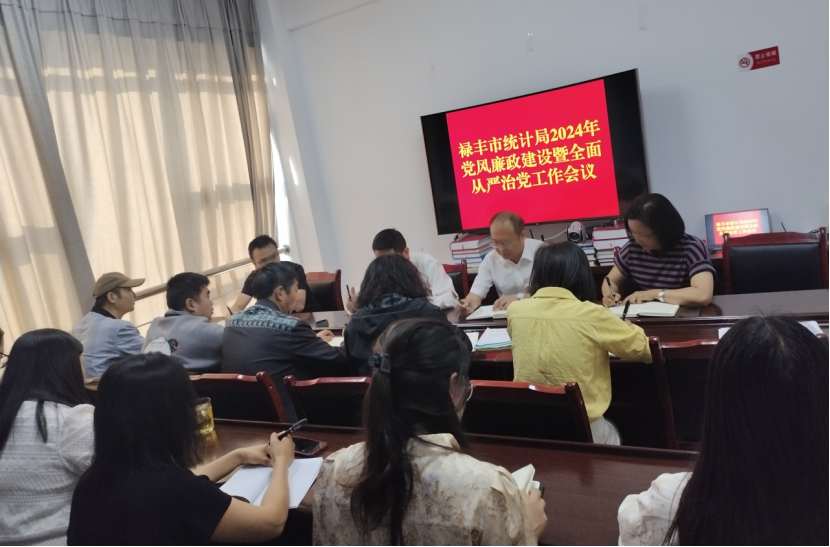 2024年4月19日,禄丰市统计局召开2024年党风廉政建设暨全面从严治党工作会议,会议传达学习党的二十大精神及二十届中纪委三次全会和省纪委十一届四次全会、州纪委十届四次全会、市纪委二届四次全会精神,学习《中国共产党纪律处分条例》,传达有关地区统计违法案件通报,开展警示教育及廉政提醒谈话。市统计局全体干部职工参加会议。