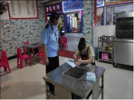 执法人员结合日常巡查工作,走访各餐饮门店开展政策法规宣传,引导餐饮服务业经营者自觉履行油烟污染防治主体责任,提高餐饮场所从业人员主体责任意识、法律意识和规范经营意识;督促各餐饮单位要定期清洗维护油烟净化设施,发放烧烤经营户告知书,做好清洗台账记录,确保油烟净化设施正常运行。