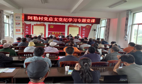 讲授一堂纪律党课。市搬迁安置办党组书记到中村乡阿勒村委会讲授《如何做一名合格的新时代农村党员》专题党课,引导党员增强党纪意识,提升党性修养,做到学纪、知纪、明纪、守纪,争当做一名合格的新时代农村党员。