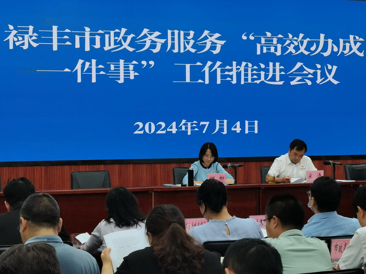 为贯彻落实省、州政务服务“高效办成一件事”工作要求,结合禄丰市实际,进一步推动“高效办成一件事”,2024年7月4日上午,在市政务服务局407会议室组织召开了禄丰市政务服务“高效办成一件事”工作推进会议,“高效办成一件事”涉及部门共41人参加会议。市委常委,市人民政府副市长何柳同志出席会议并讲话。