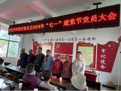 颁发“光荣在党50年”纪念章。乡党委政府组织委员邝玥颖、村党总支书记佘永军同志向党龄达到50年的优秀共产党员颁发“光荣在党50年”纪念章。感谢他们半个世纪来为党和人民的事业所作出的贡献,向他们致以亲切的问候和崇高的敬意。同时,勉励全体党员不忘入党初心,牢记职责使命。