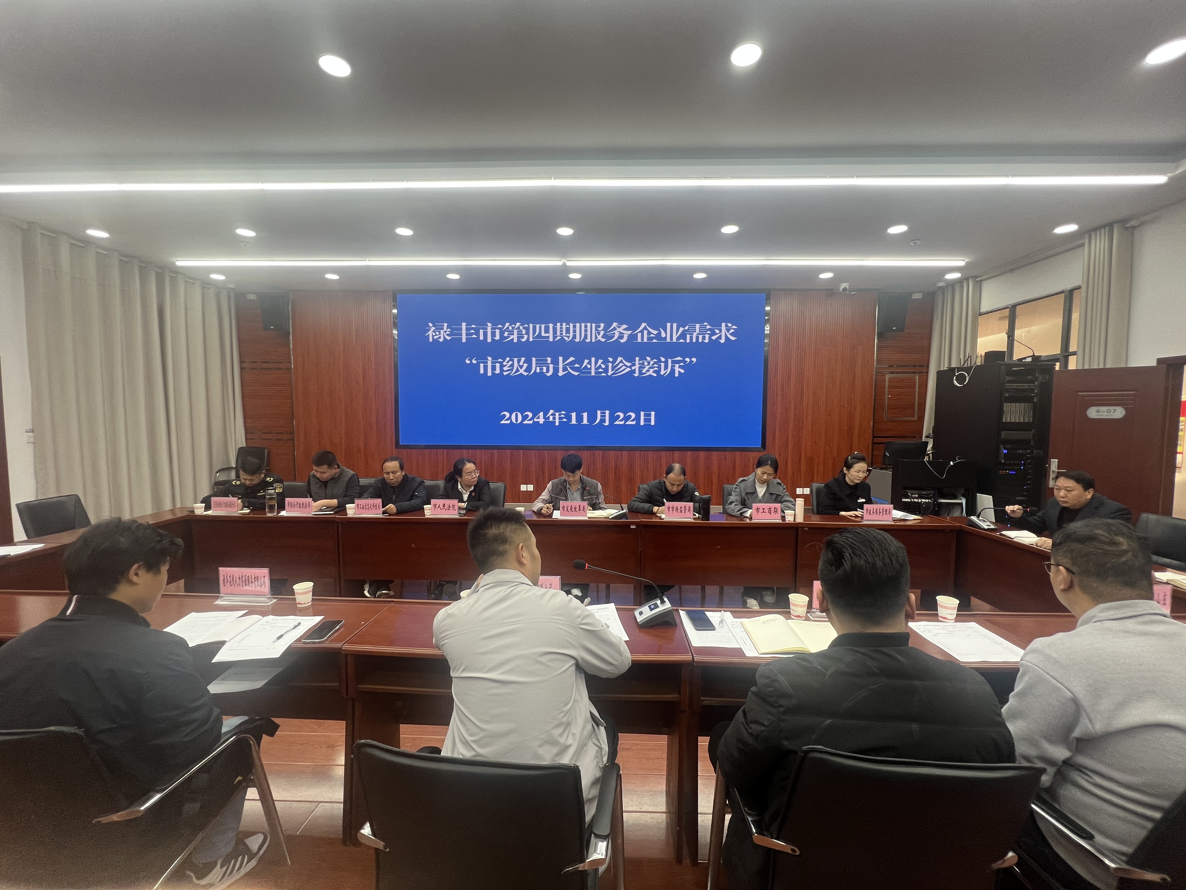 2024年11月22日,禄丰市开展了第四期服务企业需求“市级局长坐诊接诉”,4家企业带着发展痛点、堵点、难点现场“求医”,市发展改革局牵头,市市场监管局、市政务服务局、市工业信息化科技局、市综合行政执法局等部门联合“会诊”,合力解决企业发展诉求。“坐诊接诉”采取“N对一”坐诊接诉的方式进行,企业提出需要帮助解决的困难问题,市级相关部门负责人现场对企业提出的诉求从政策解读、问题分析、办理承诺等方面进行了应答。