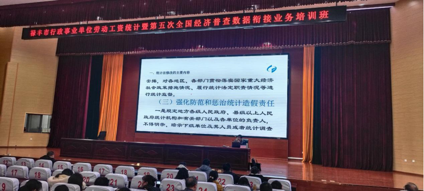 为深入贯彻落实国家统计制度改革有关要求,进一步做好禄丰市劳动工资统计工作,12月13日,禄丰市统计局举办全市行政事业单位劳动工资统计业务培训班。全市行政事业单位劳动工资统计业务人员共153人参加培训。