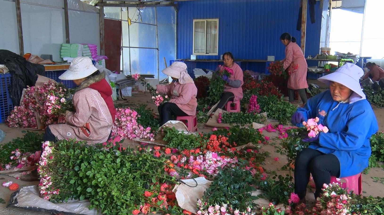 在恐龙山镇大小村、川街、长田鲜切花分拣车间,工人们正在对洋桔梗、多头玫瑰、满天星等20多个品种的鲜切花进行打刺、分拣、包装、装车,准备发往昆明斗南花市。法门村委会小村村的饶红琼是车间的一名包花工人,“务工不用去远方,家门口的务工车间就是好地方”。她一边说,一边正熟练地将一朵朵玫瑰捆扎成花束。
