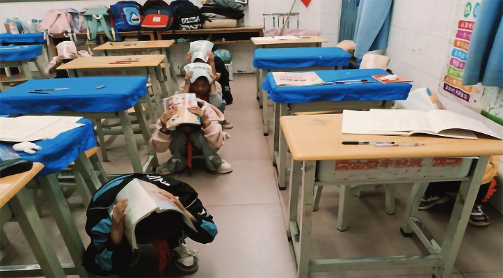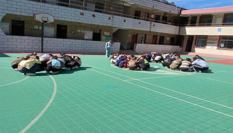 演练前期,学校制定精准预案,明确教职工岗位职责,并通过主题班会、校园广播等方式普及地质灾害避险知识。演练采取“白+黑”的方式进行。白天演练中,随着警报声响起,全校62名学生在8名教职工引导下。先以书包护头课桌避险,警报暂停后按预定路线1分20秒即疏散至操场。全员无遗漏。