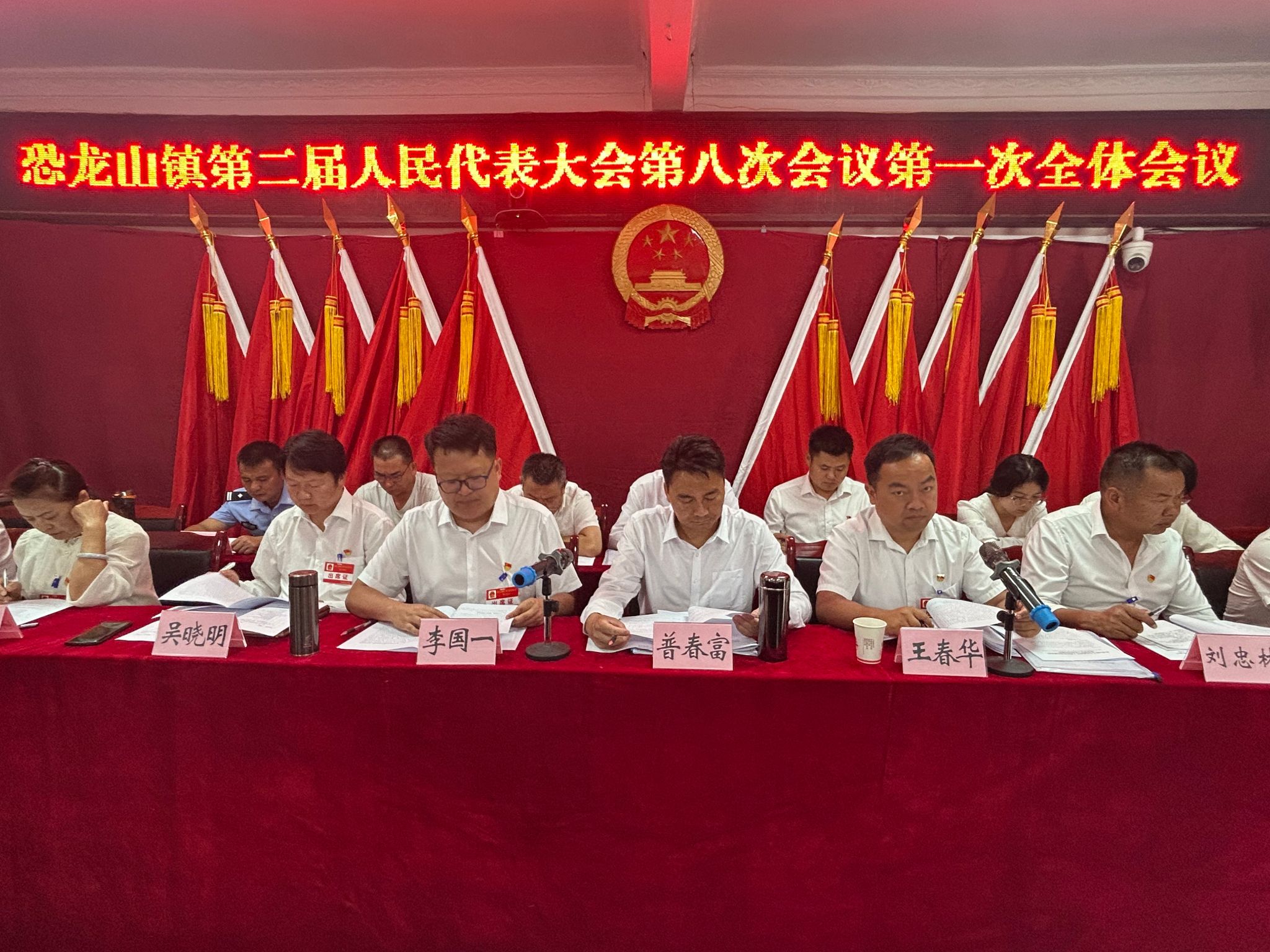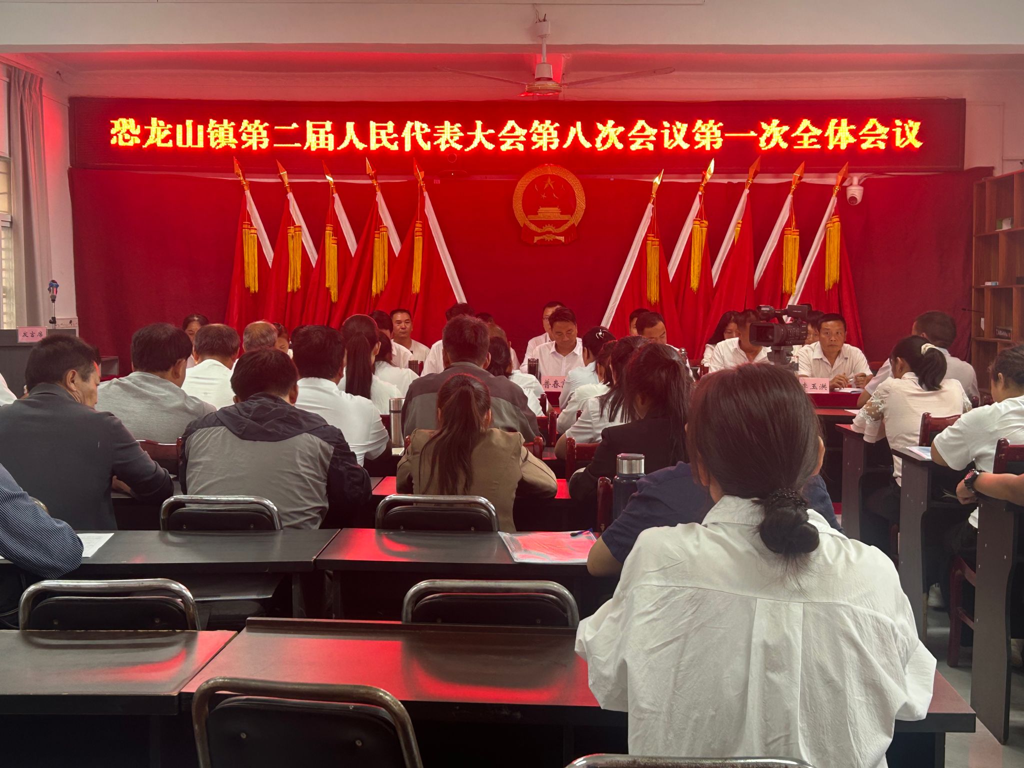 14时,恐龙山镇第二届人民代表大会第八次会议在全体与会人员奏唱中华人民共和国国歌声中开幕。开幕式后举行了第一次全体会议。
