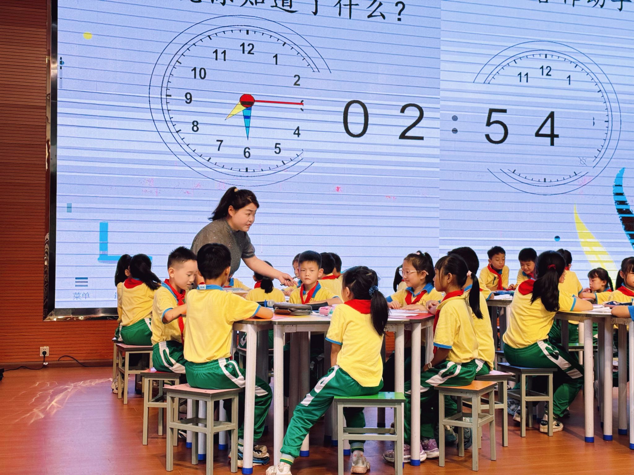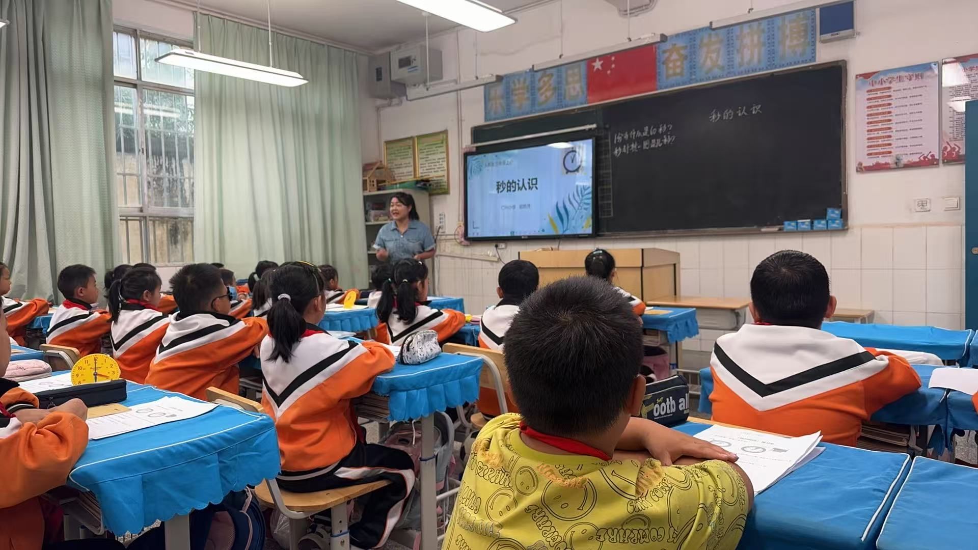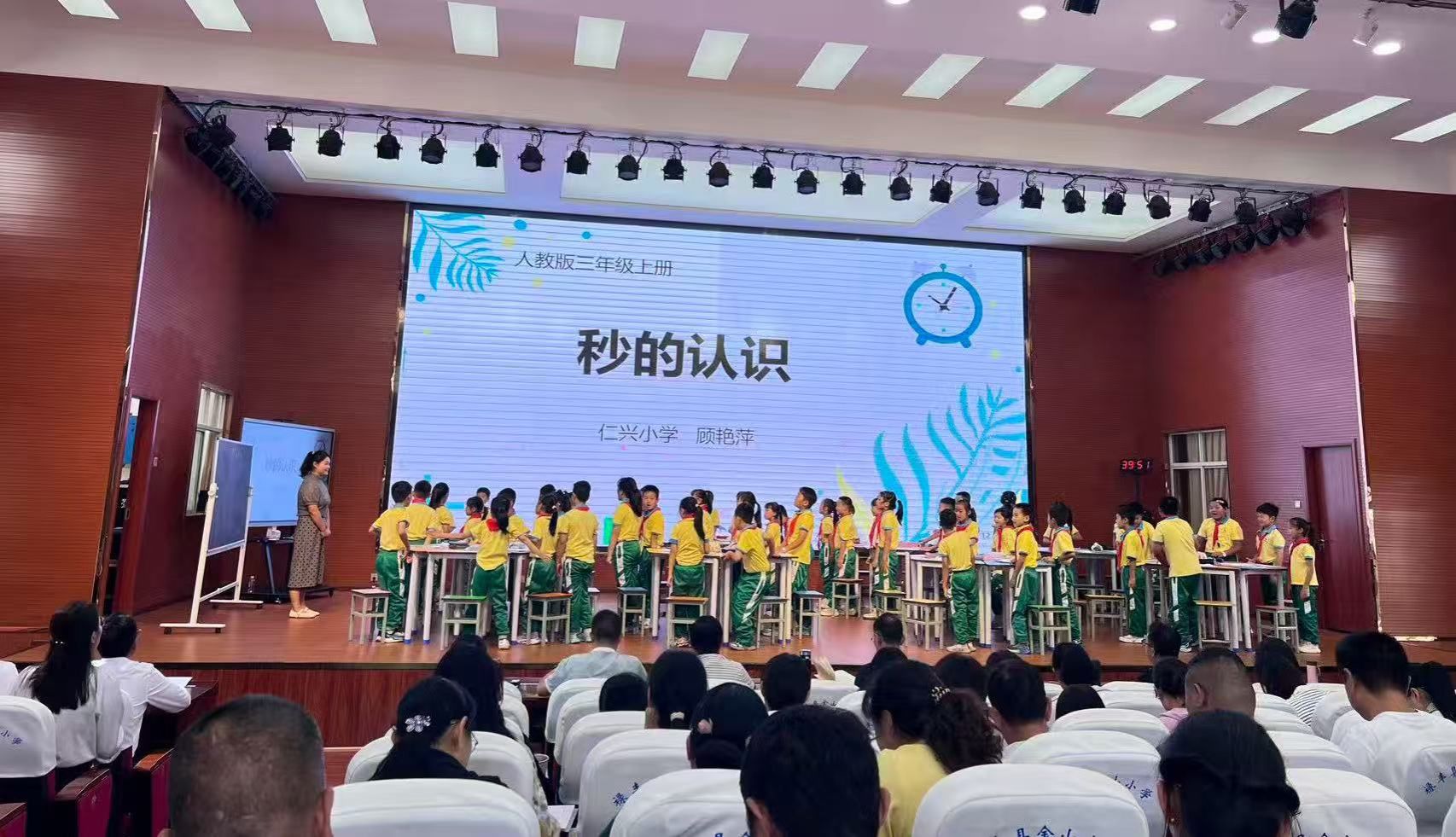 课赛现场,顾艳萍老师围绕三年级上册数学《秒的认识》这一课题,严格遵循禄丰市小学数学“先学后教”的教学流程开展教学,她语言简洁、教态亲切,全程将学习主动权交予学生,引导学生通过“动脑想、用眼看、用手做、用口说”深度参与,再借生动实例与趣味互动激发兴趣,帮助学生建立1秒、1分的时间观念,掌握秒与分的换算关系;同时,她结合生活实际渗透珍惜时间教育,打造出兼具活力与人文的课堂,赢得评委与观众一致认可。