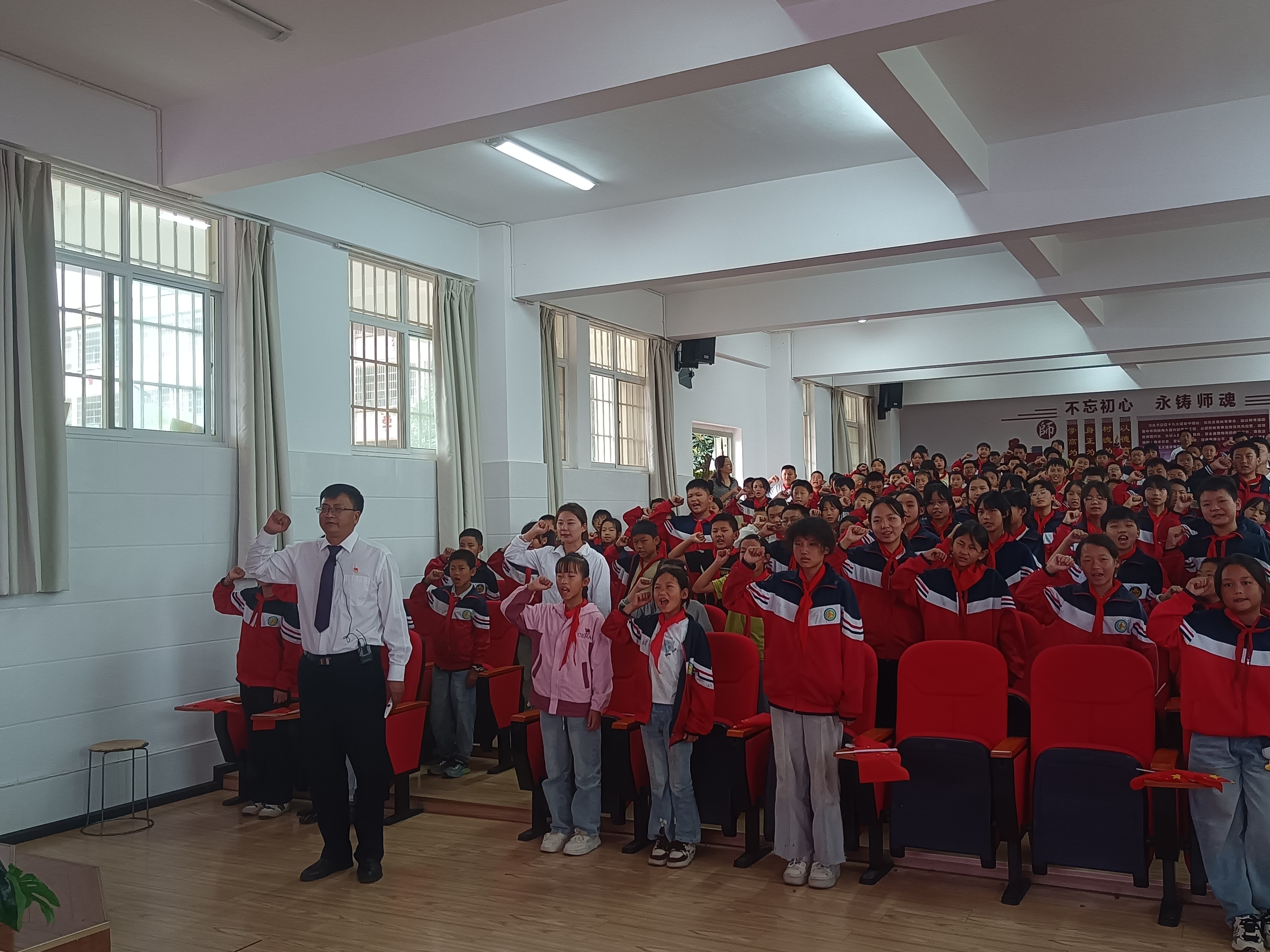 课程尾声,年应宏副书记寄语全体学生“争做新时代好少年”,鼓励大家将爱国之情转化为报国之行,树立远大理想、坚持勤学修身,并带领全体同学在国旗下庄严宣誓。