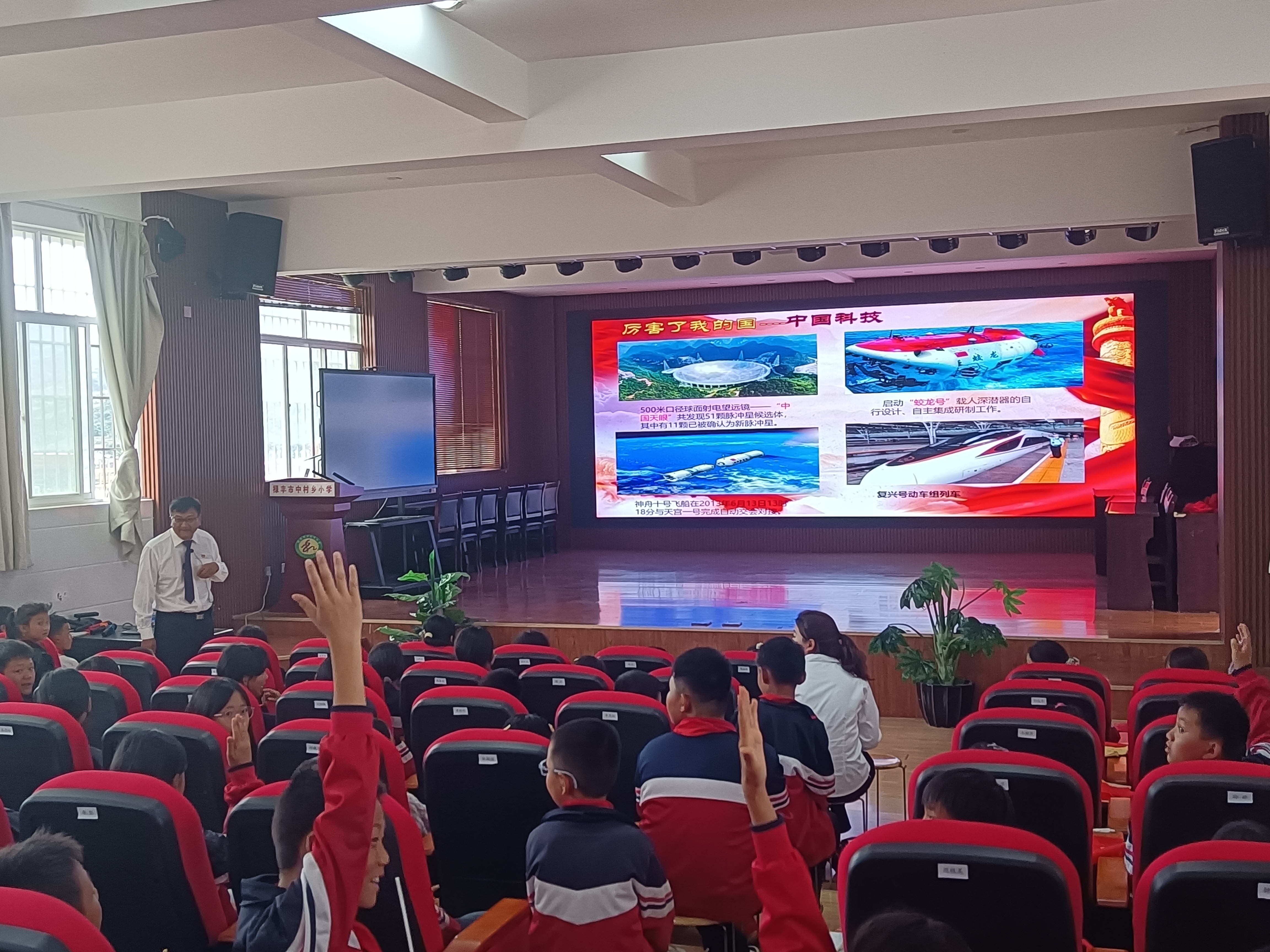 9月24日下午,中村乡小学面向五、六年级200余名师生举办了一场别开生面的“礼赞祖国”主题思政课。活动以沉浸式、互动式教育为载体,引导师生共同表达对祖国的热爱与敬意。