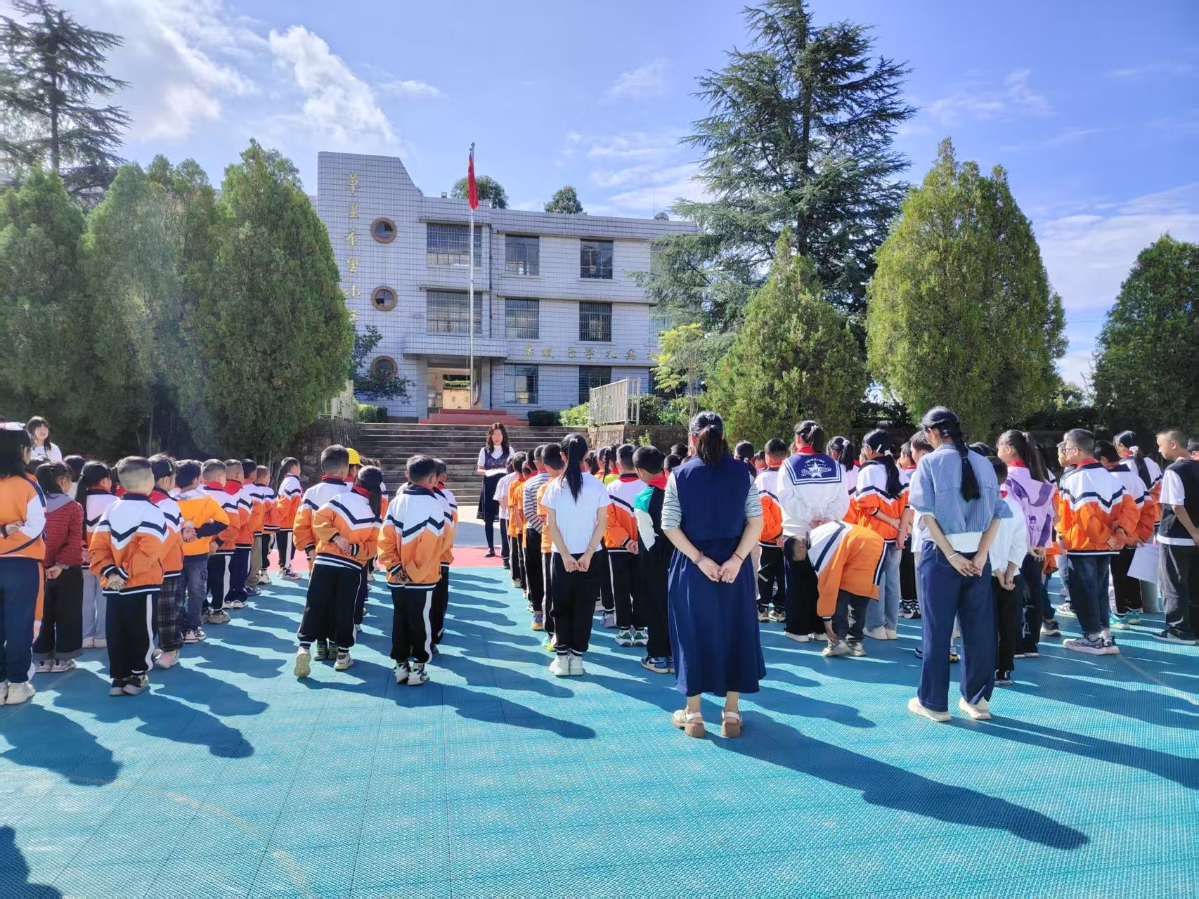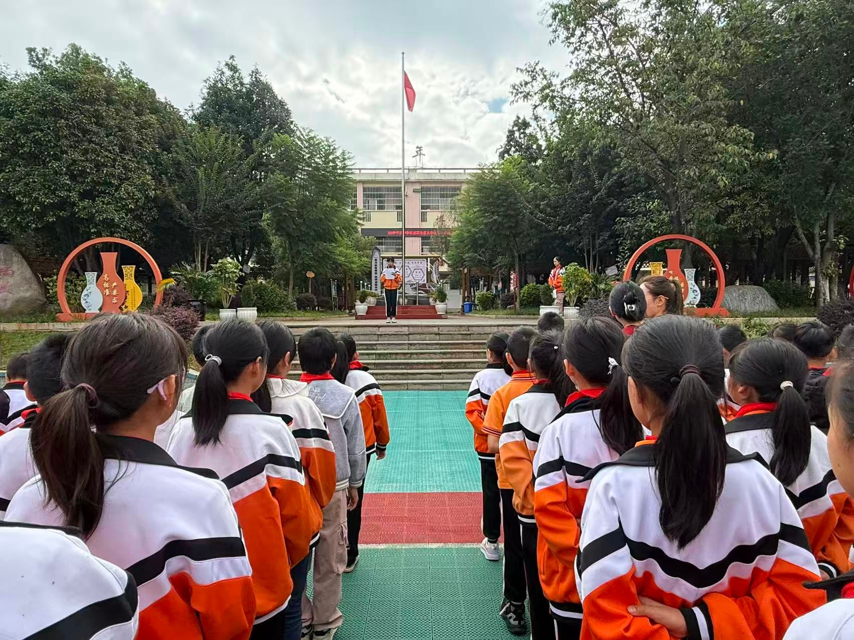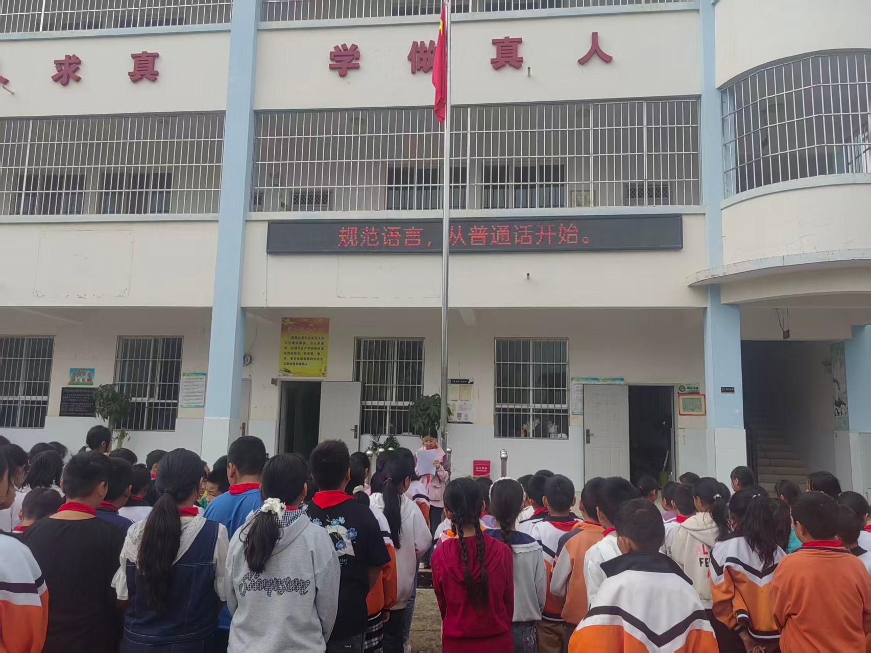在庄严的升旗仪式上,值周教师以“普通话——连接你我的桥梁”为主题发表演讲,深情讲述语言在促进交流、传承文化中的重要作用,并向全体师生发出“说普通话、写规范字、做文明人”的倡议,激发全员参与热情。