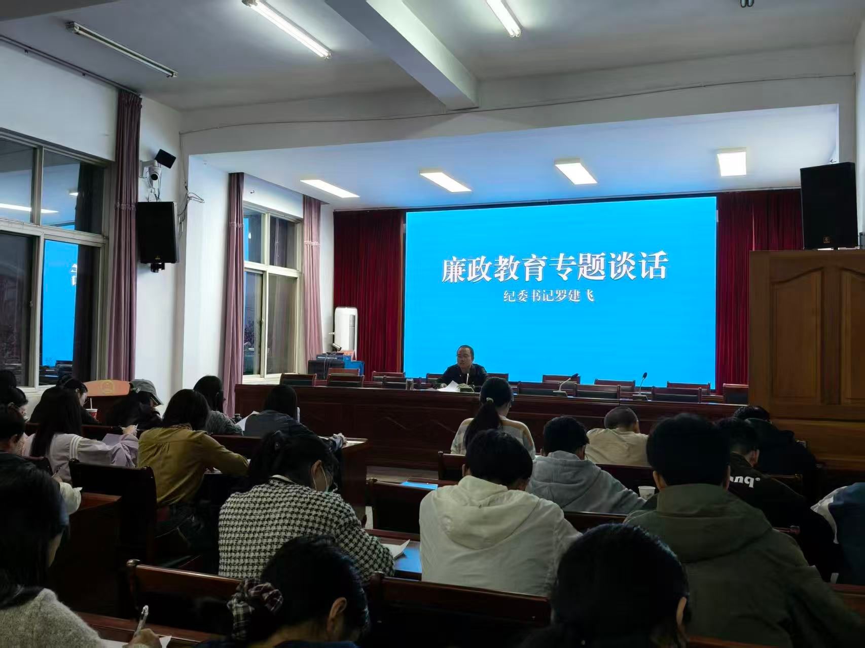 为深入贯彻落实《中国共产党党内监督条例》,全面从严治党,切实增强新入职干部廉洁自律意识,仁兴镇于10月15日19时召开了廉政纪律专题辅导暨新入职干部廉政谈话会。镇纪委书记罗建飞同志作专题辅导,全镇新入职干部及35岁以下干部职工参加了此次会议。