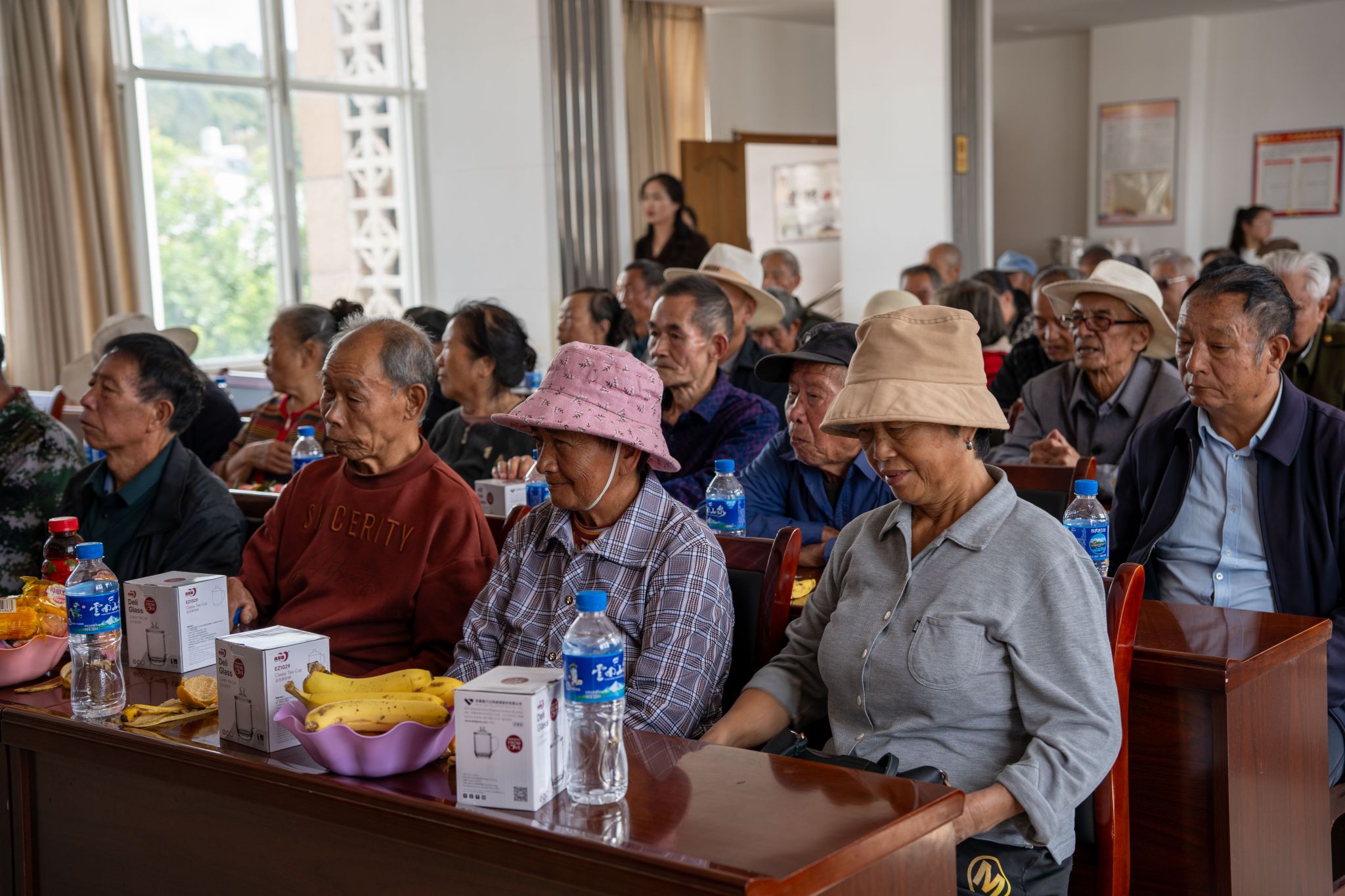 云南省基金会、云南省盛时迪安生物科技有限公司、共青团禄丰市委、一平浪镇团委、一平浪中心卫生院的青年志愿者们,到大窝村委会开展“青心敬老 青暖重阳”主题敬老活动。活动中,他们走到老人身边悉心询问老年人的身体、生活近况,认真倾听他们的心声和诉求,给他们送上了精心准备的敬老节礼物。此外,大窝村党总支还联动一平浪中心卫生院到村卫生室开展义诊活动,医护人员耐心询问老人身体情况,并结合老人的症状给出诊疗意见。