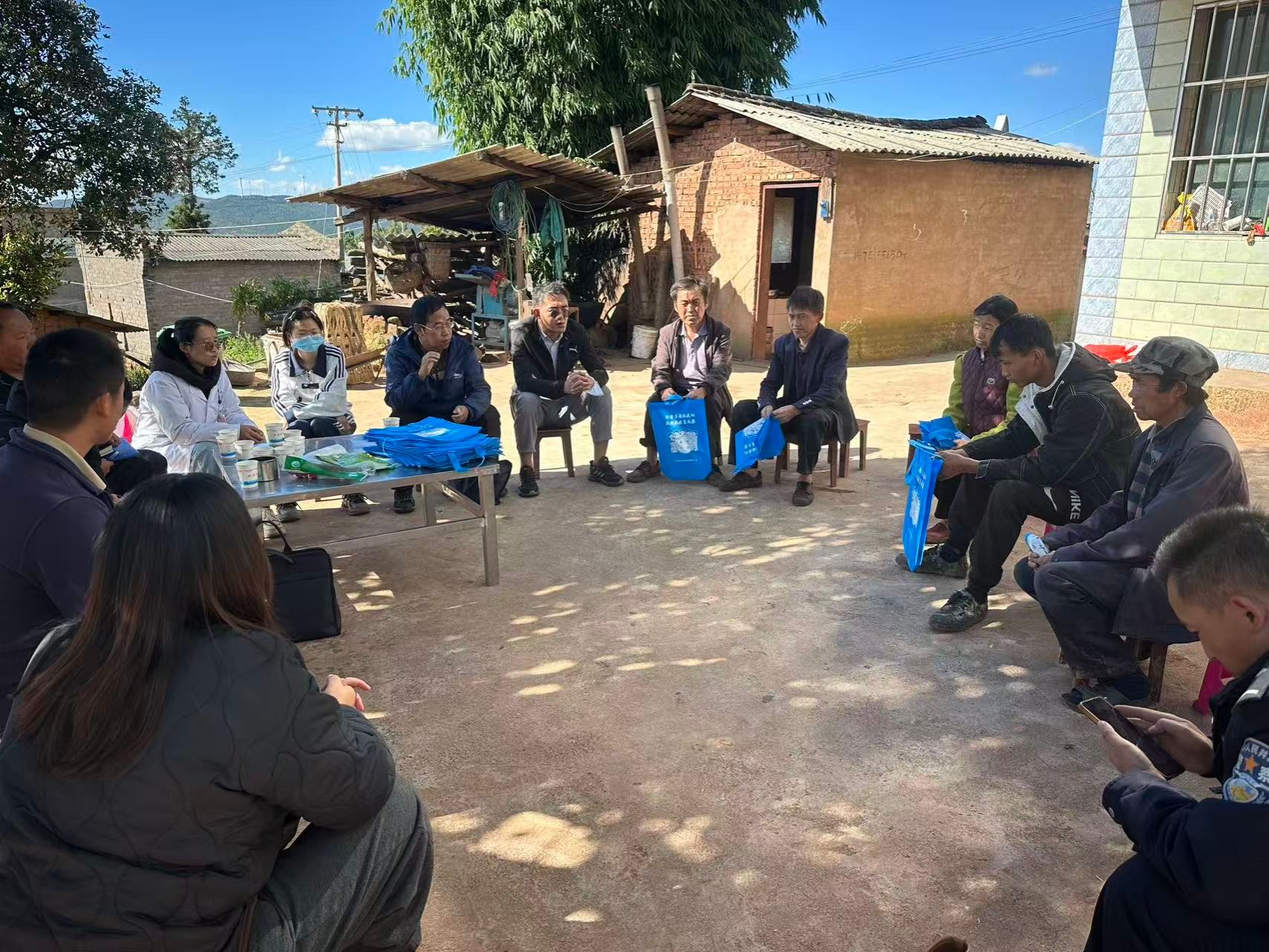 活动中,宣讲团紧扣“三送”核心,精准对接群众需求开展多维服务。送法规进场所环节,宣讲团围绕《中华人民共和国乡村振兴促进法》《中华人民共和国农业法》等法律法规,结合典型案例解读乡村振兴扶持政策,农业生产行为如何寻求法律保护合法权益,筑牢法治防线;送政策进群众阶段,宣讲团以院坝会、互动问答等形式,用身边的案例“土话”讲解《中华人民共和国民法典》《中华人民共和国治安管理处罚法》《中华人民共和国道路交通安全法》,针对群众关心的个人权益保障、邻里矛盾调解、道路交通安全等问题逐一回应;送健康进家庭环节,卫生院医生现场演示了急救心肺复苏术,使用汉语、彝语、苗语讲解血压血糖健康知识和医疗保险报销政策,医护人员为群众提供血压测量、健康咨询等服务,发放健康知识手册,普及中医药理疗、疾病预防、合理膳食、优生优育等常识,将健康关怀送到群众家门口。
